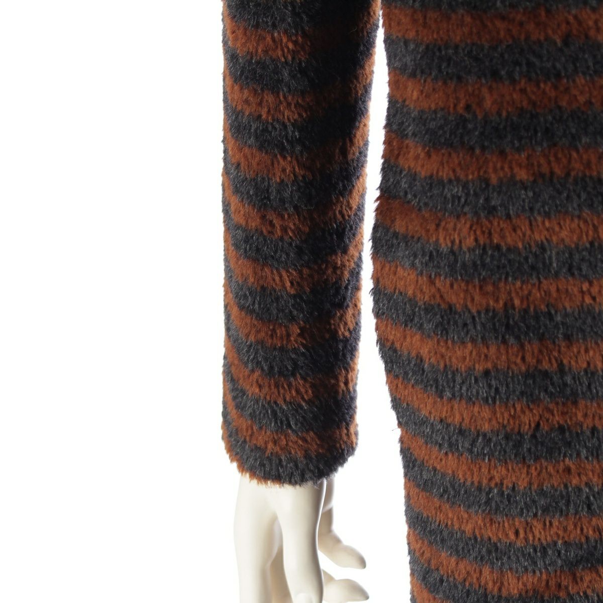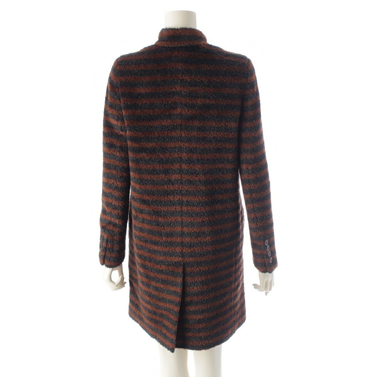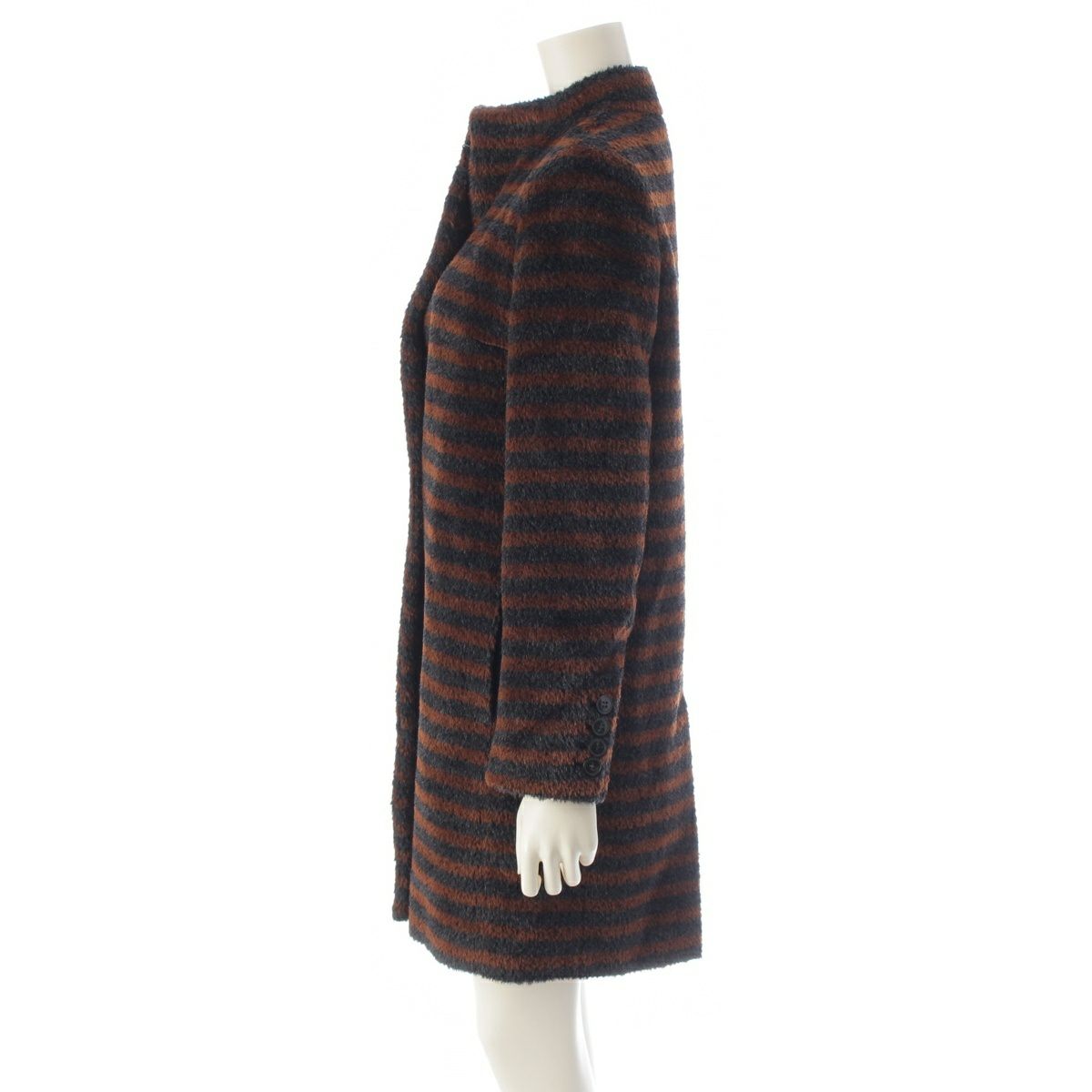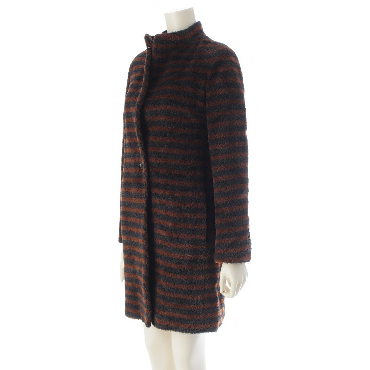 マックスマーラ アルパカ ウール ボーダー柄 ロング コート アウター 10860433000 ブラウン×ブラック 36