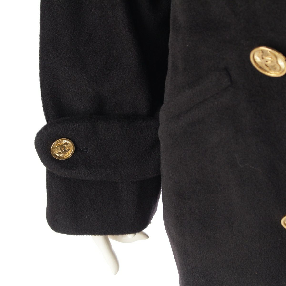シャネル ウール ヴィンテージ 金ボタン ショールカラー ボリューム オーバー コート アウター 25328 ブラック 36
