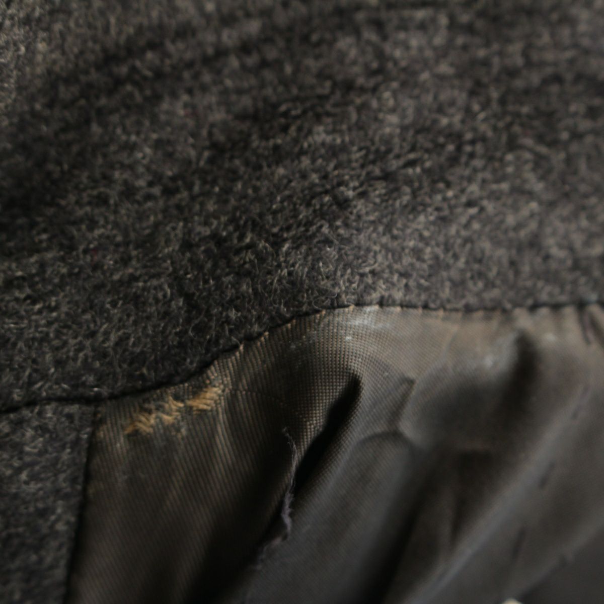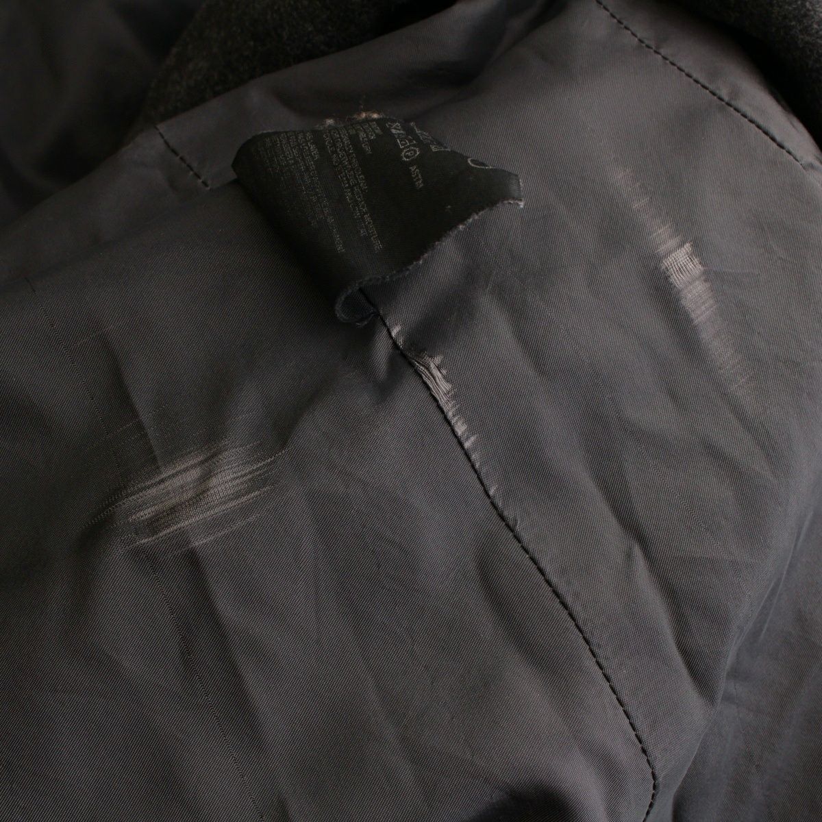 ダメージ箇所: 首元裏地、身頃裏地に汚れ/擦れ/縫製解れ、袖口に擦れ、タグに印字の薄れ、