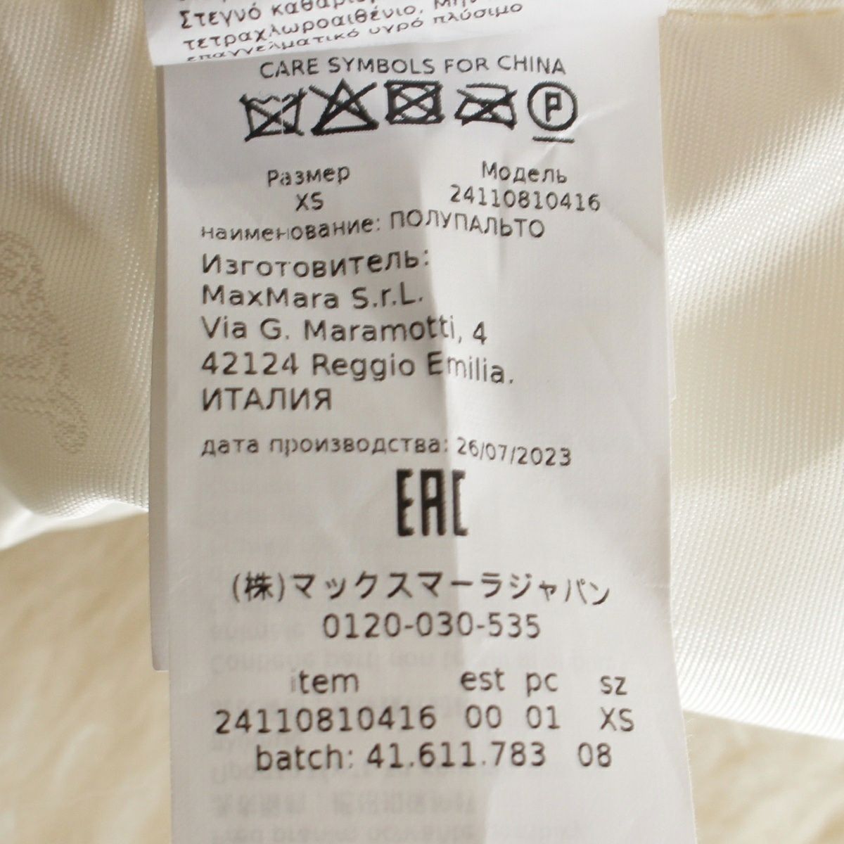 マックスマーラ テディベア アルパカ コート アウター ショート 2411081041 ホワイト XS