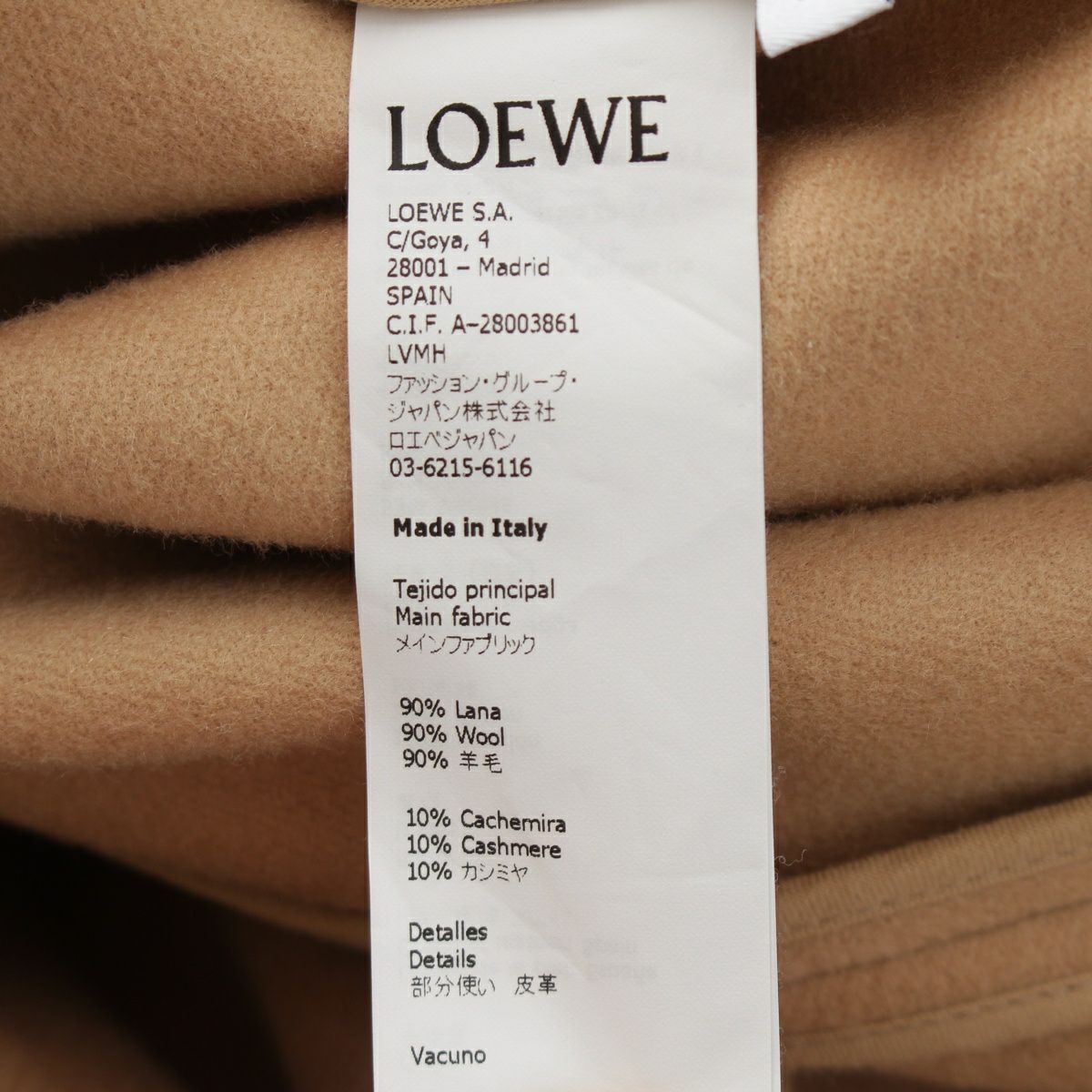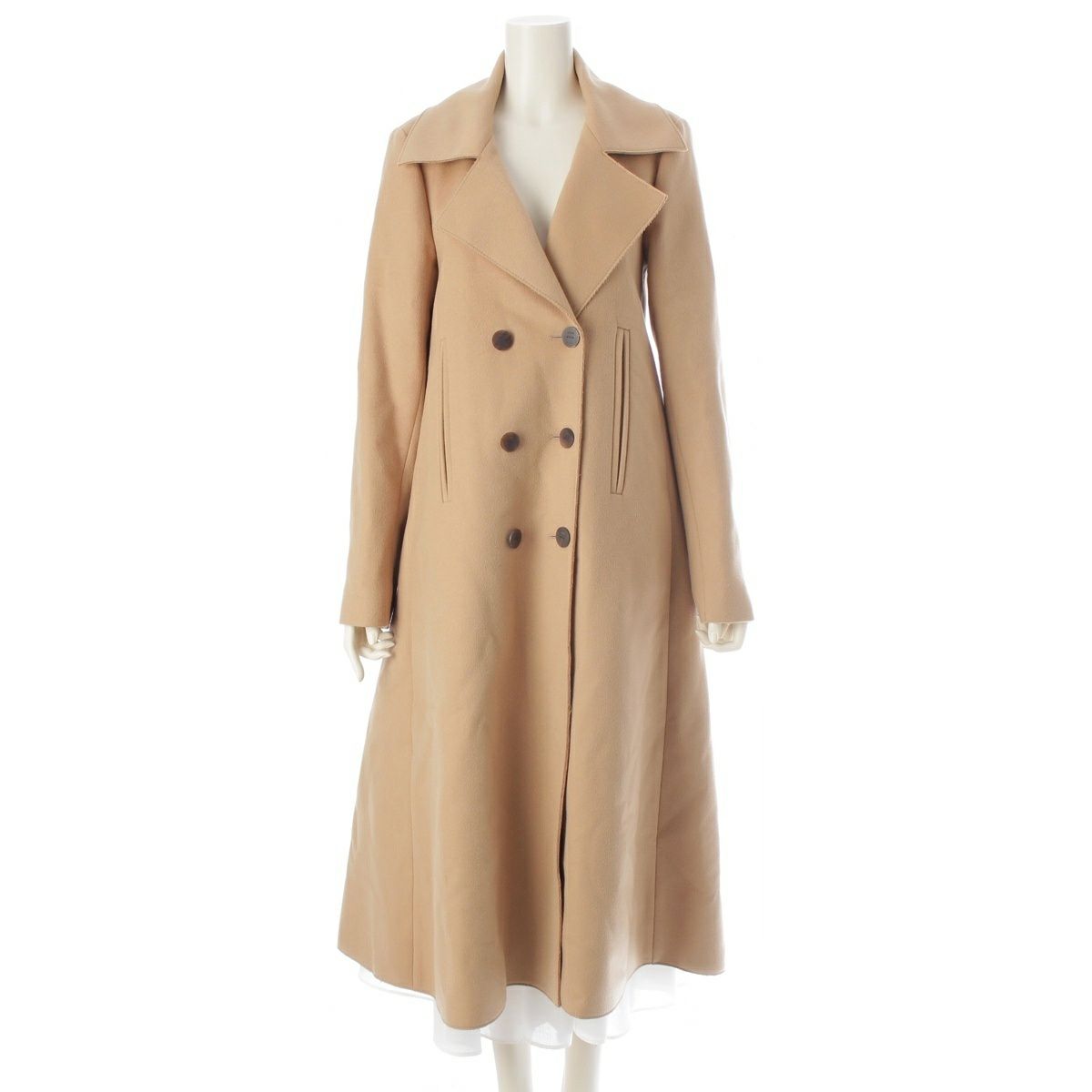 ロエベ カシミヤ×ウール アナグラム バックロゴ ダブル コート アウター S2291210ST ベージュ 38