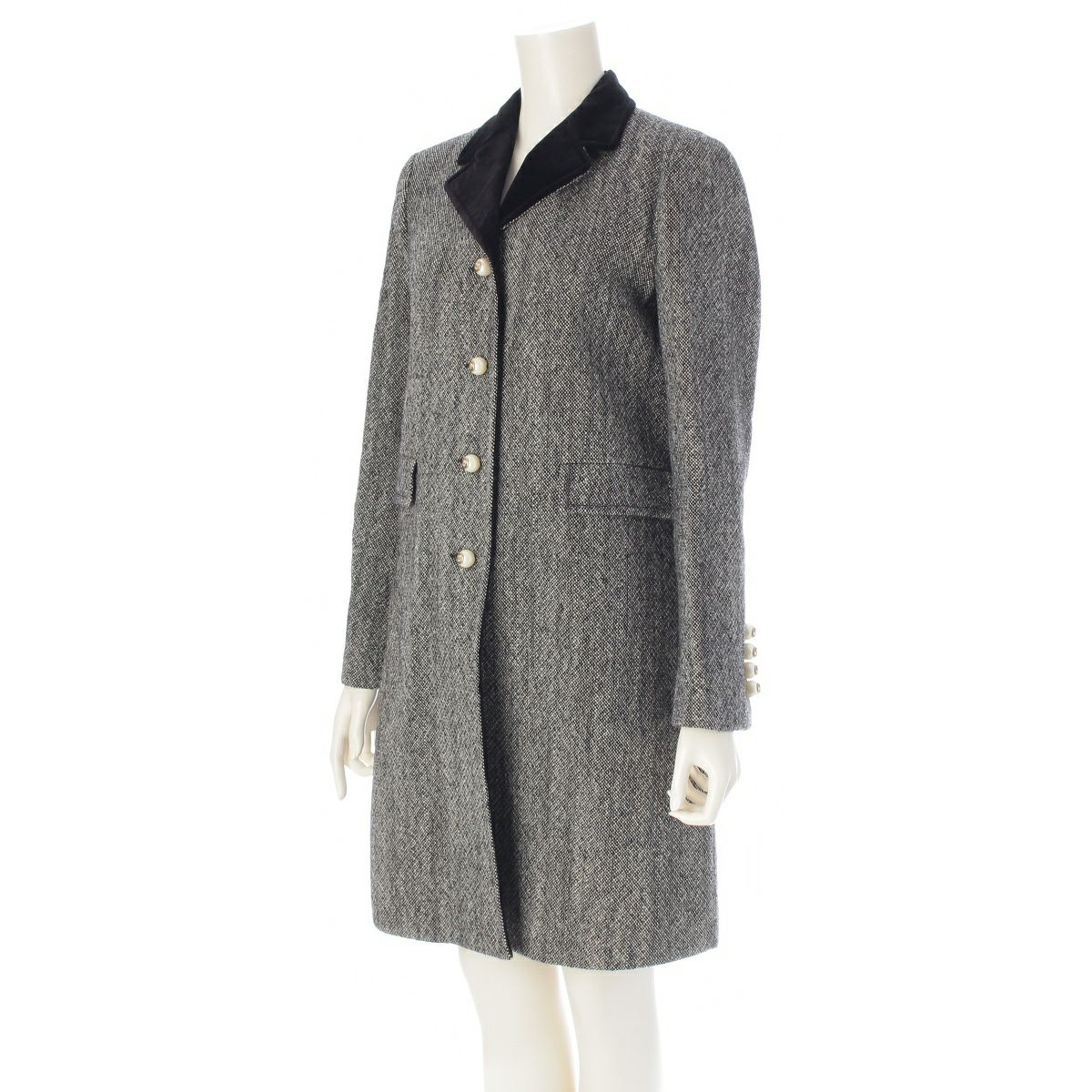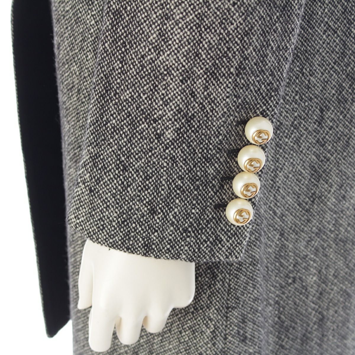 グッチ ウール GGパール ベロア コート 516422 ブラック×ホワイト 38