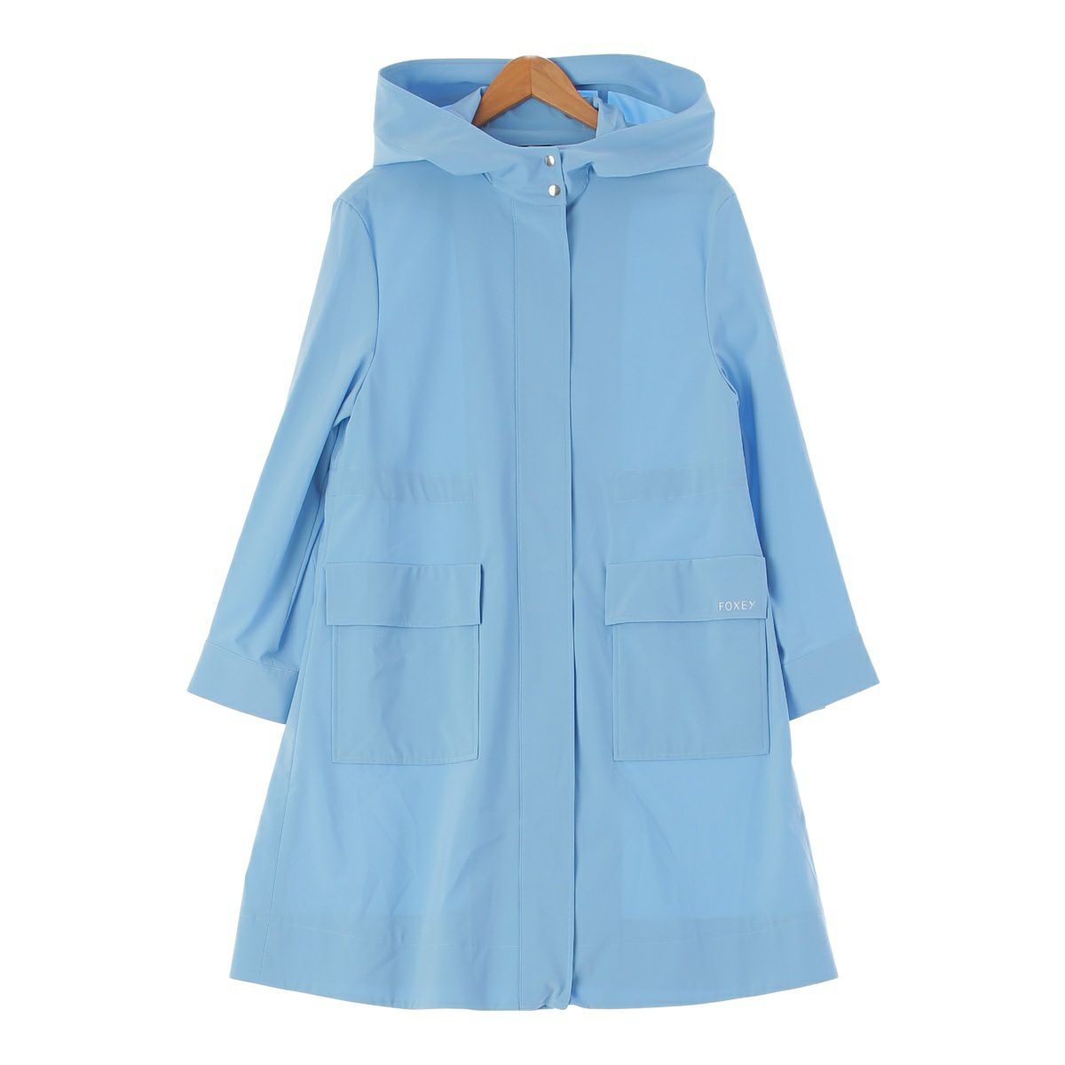 フォクシー ニューヨーク 19年 ウォータープルーフ ストレッチ フーディ ジップアップ コート 39361 ブルー 38