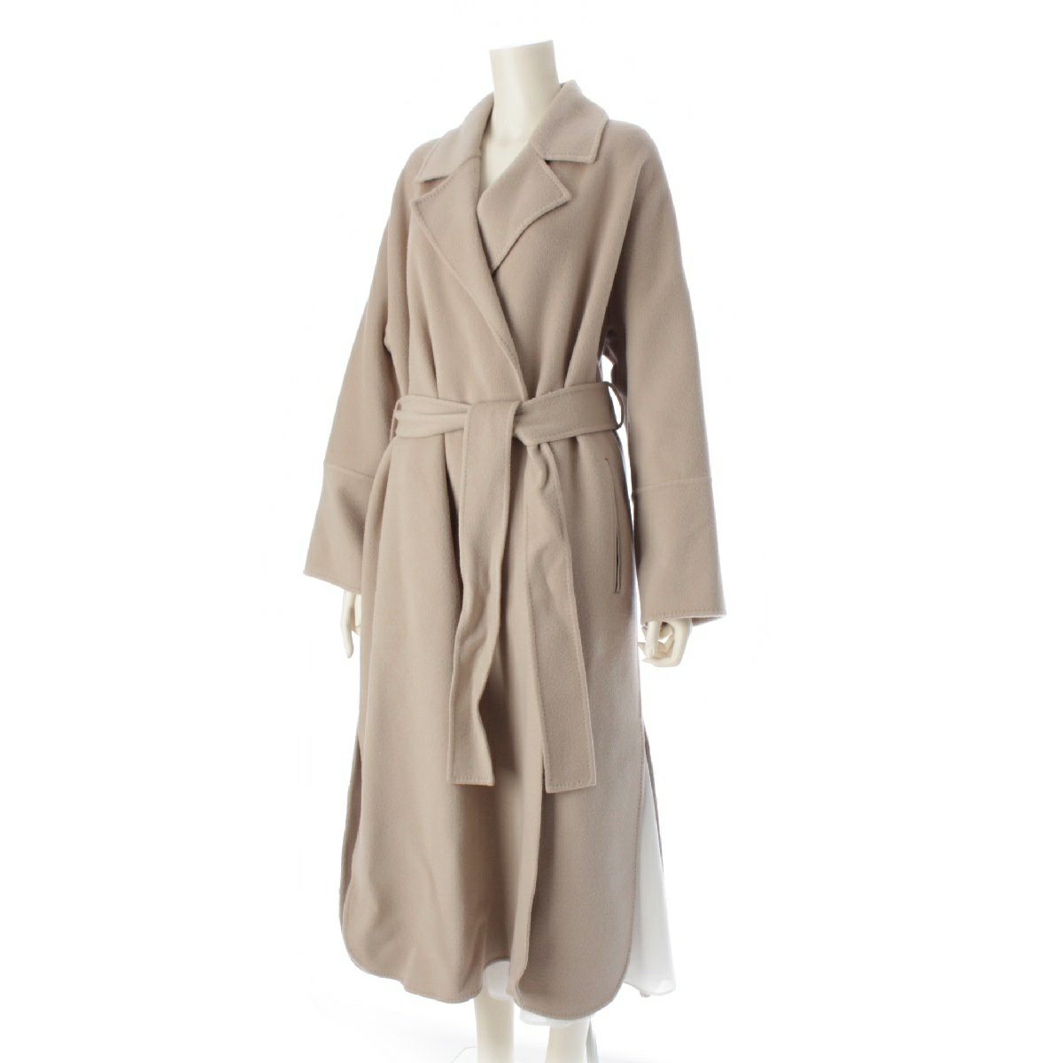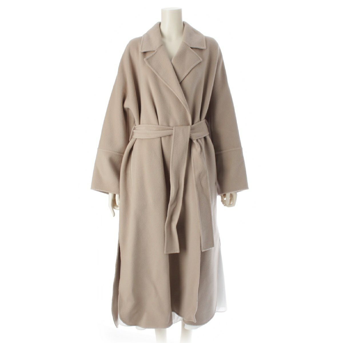 エブール ebure スーパー120S ダブルビーバー ウール ベルテッド ロング コート アウター 3410200091 グレージュ 38