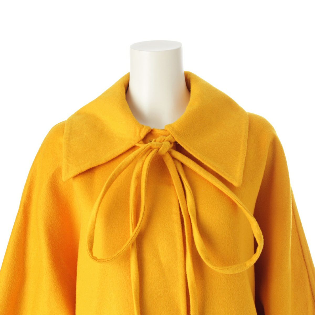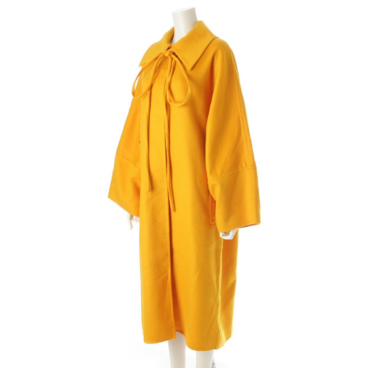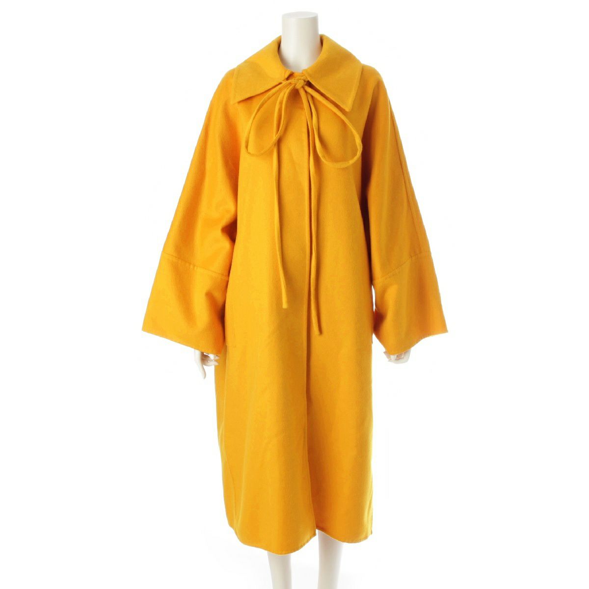 ロエベ カシミヤ ダブルフェイス コード リボン ロング コート ビッグカラー アウター D2291125LO イエロー S