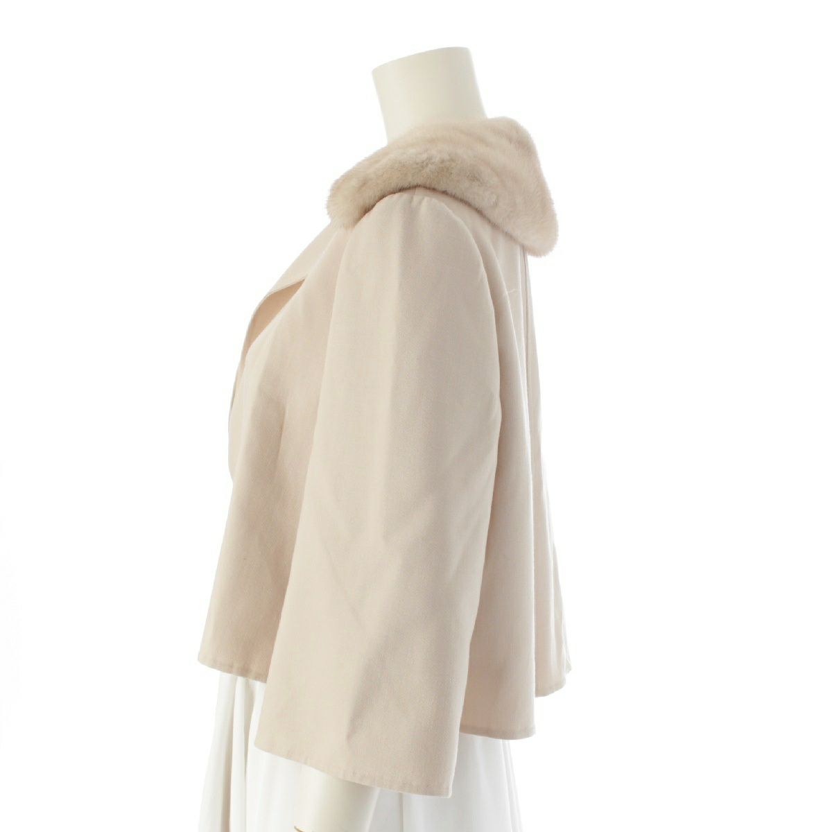 フォクシー 18年 Mink Whip Jacket ウール ミンクファー ショート コート ジャケット アウター ベージュ 42