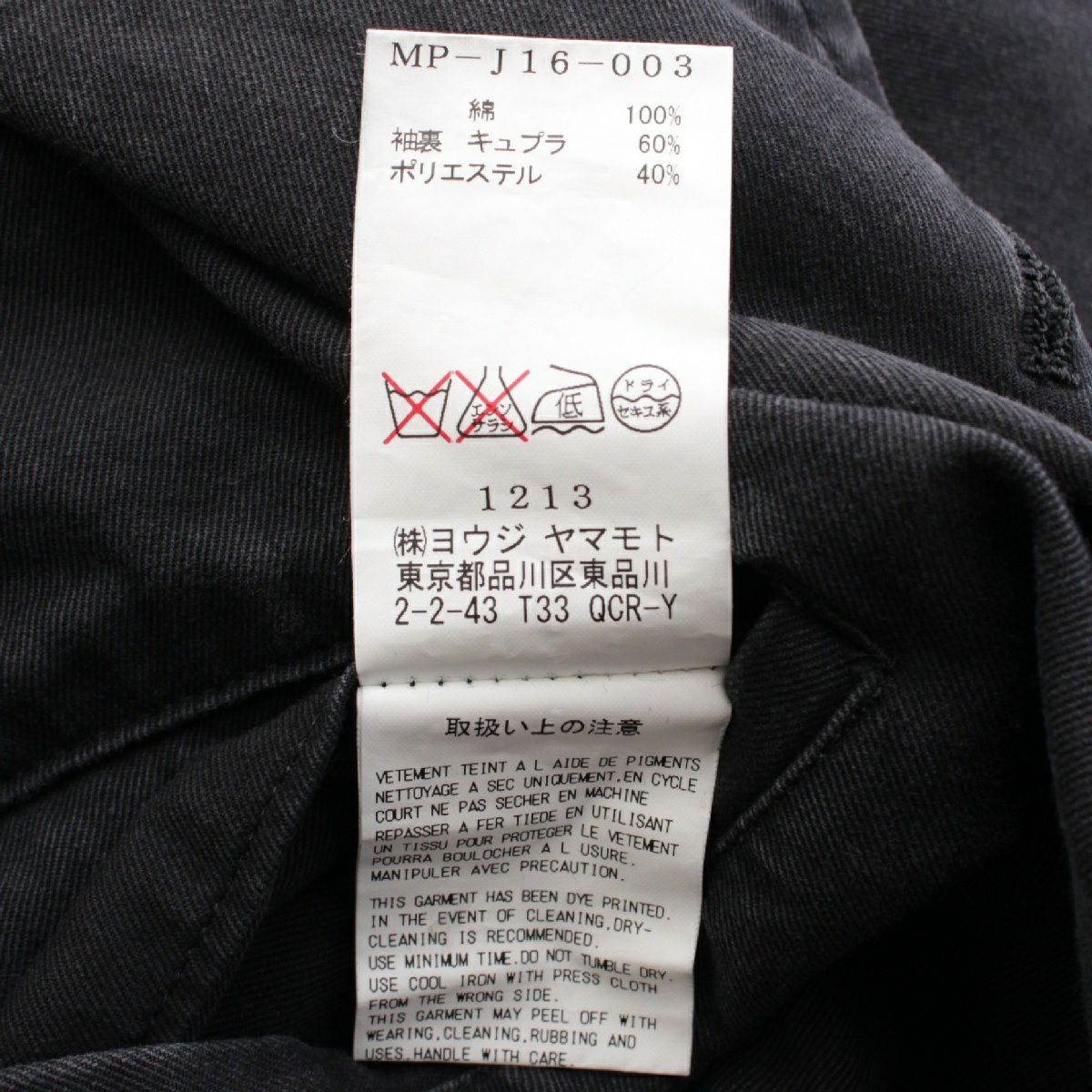 ヨウジヤマモト ワイズ Y’s コットン ヴィンテージ テーラードジャケット MP-J16-003 ブラック 2