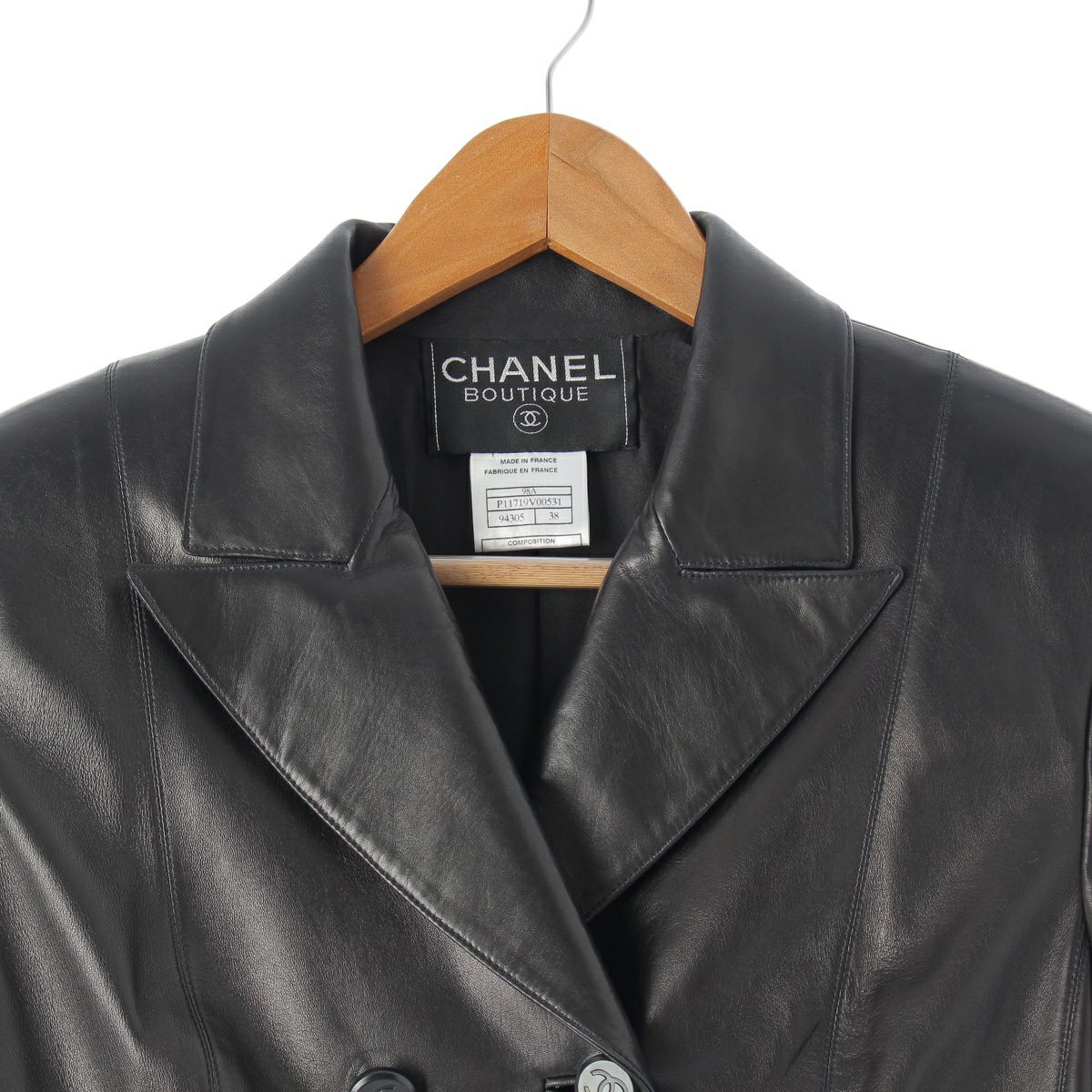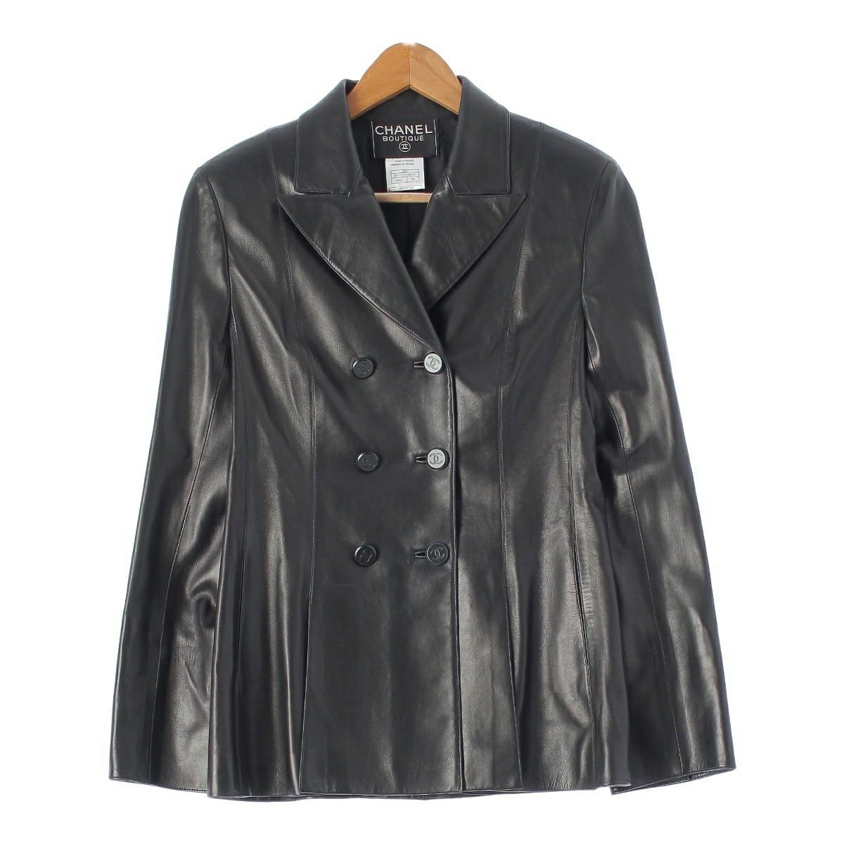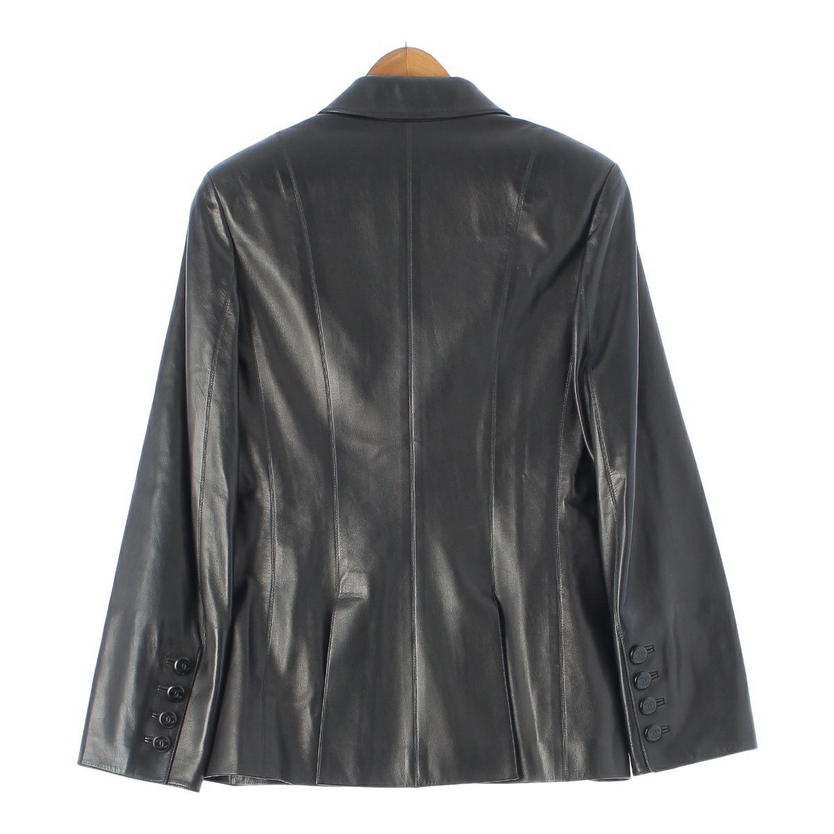 シャネル 98A ラムスキン レザー ダブルブレスト テーラードジャケット アウター P11719 ブラック 38