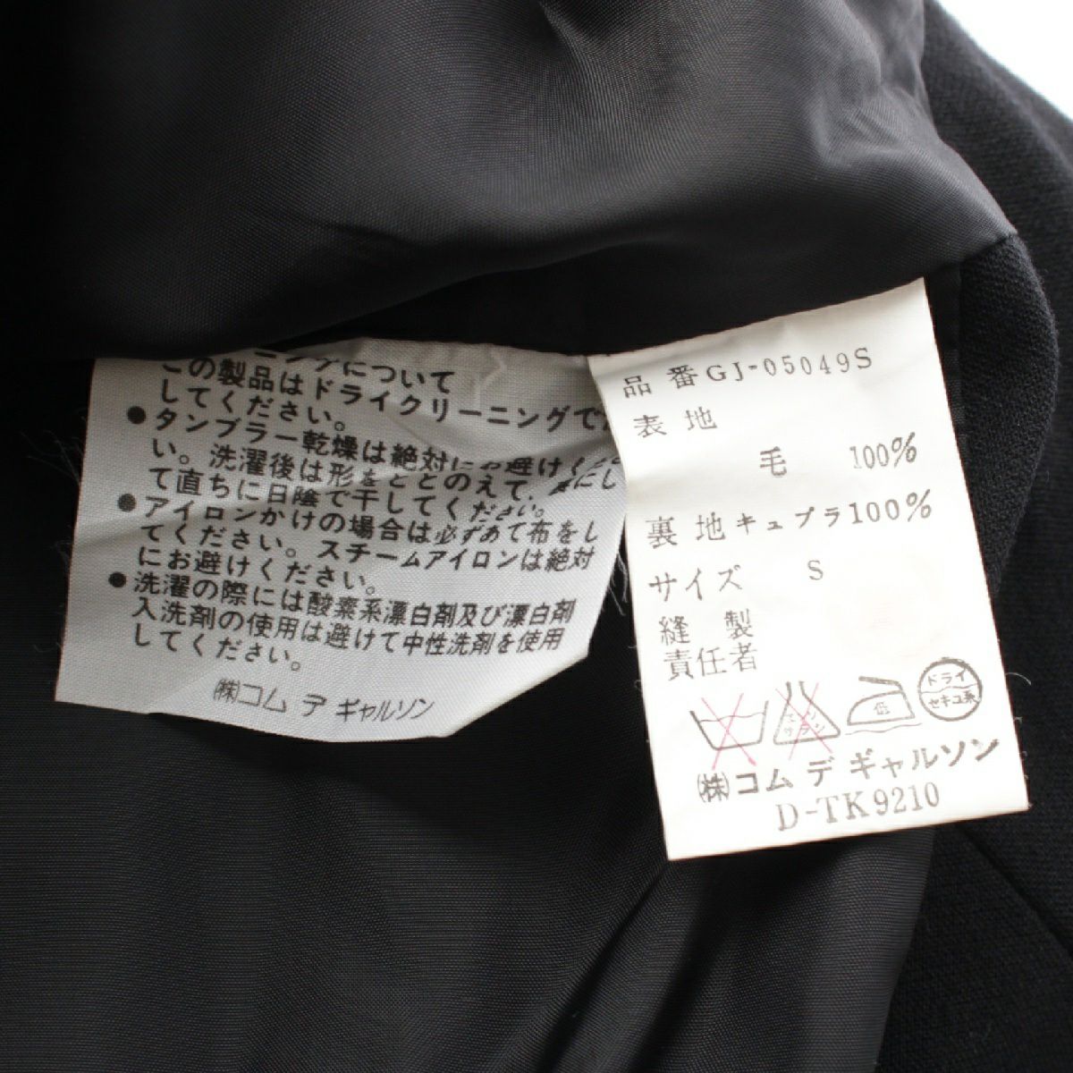 コムデギャルソン 80S ウール ベルトデザイン 変形 クロップド テーラードジャケット GJ-05049S ブラック S