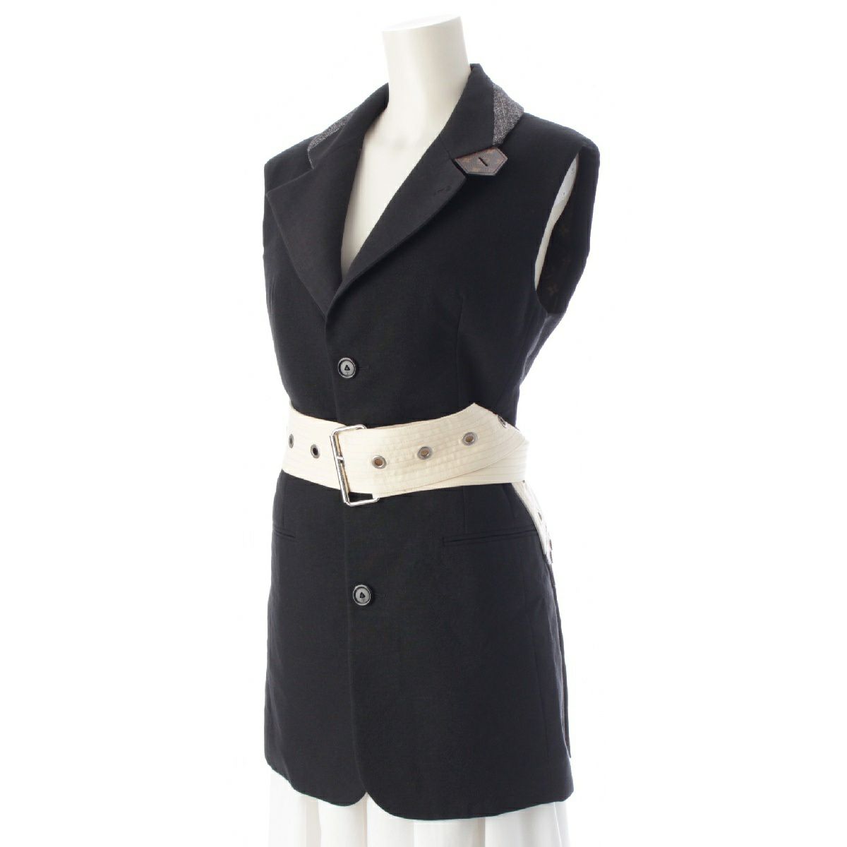 ルイヴィトン リネン モノグラム ノースリーブ テーラードジャケット ベルト付き FKVE76DT5 ネイビー 34