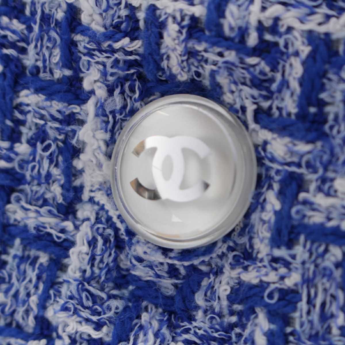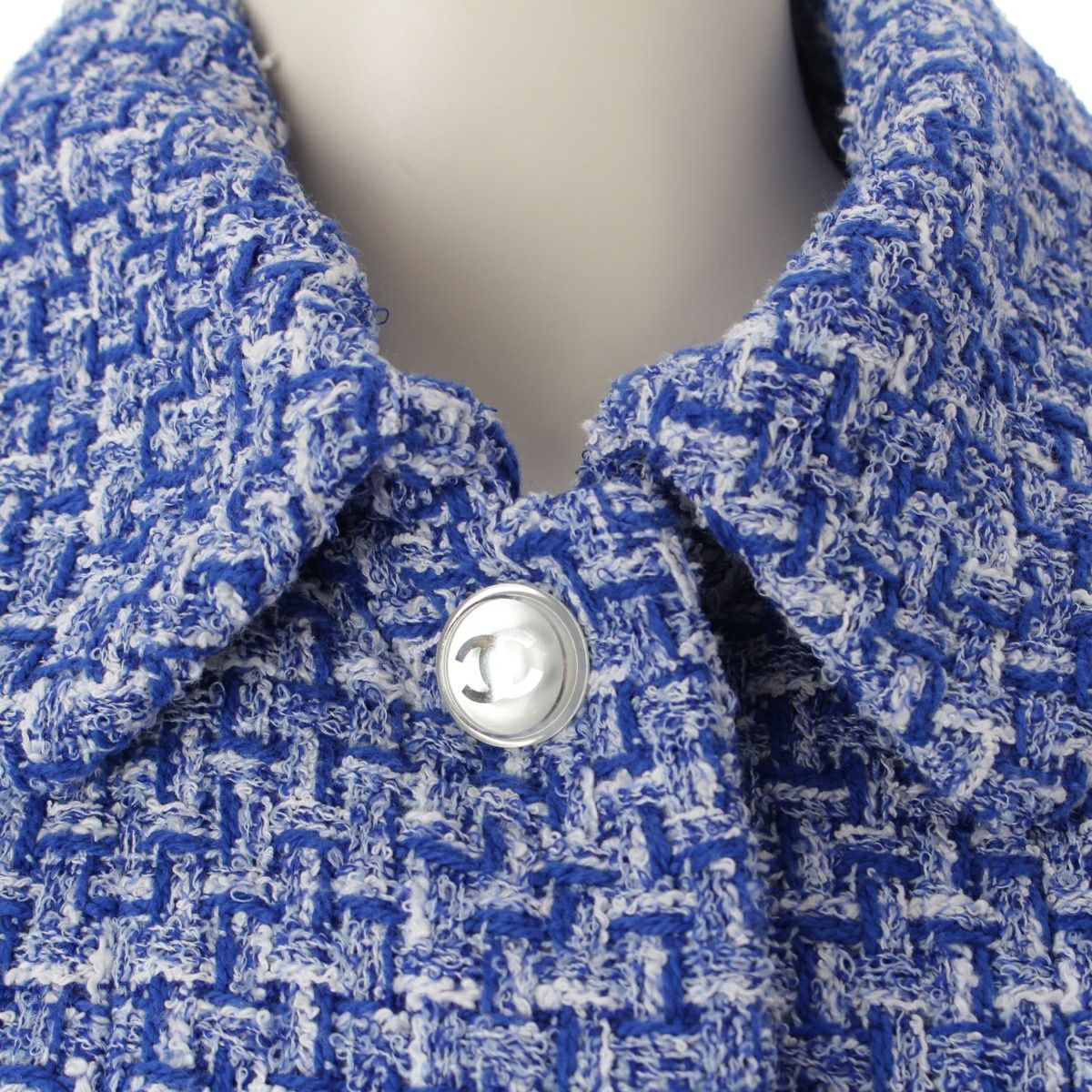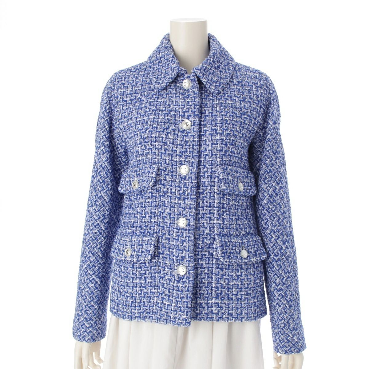 シャネル コットン ナイロン混 ココボタン ツイード テーラードジャケット P74428 ブルー 36