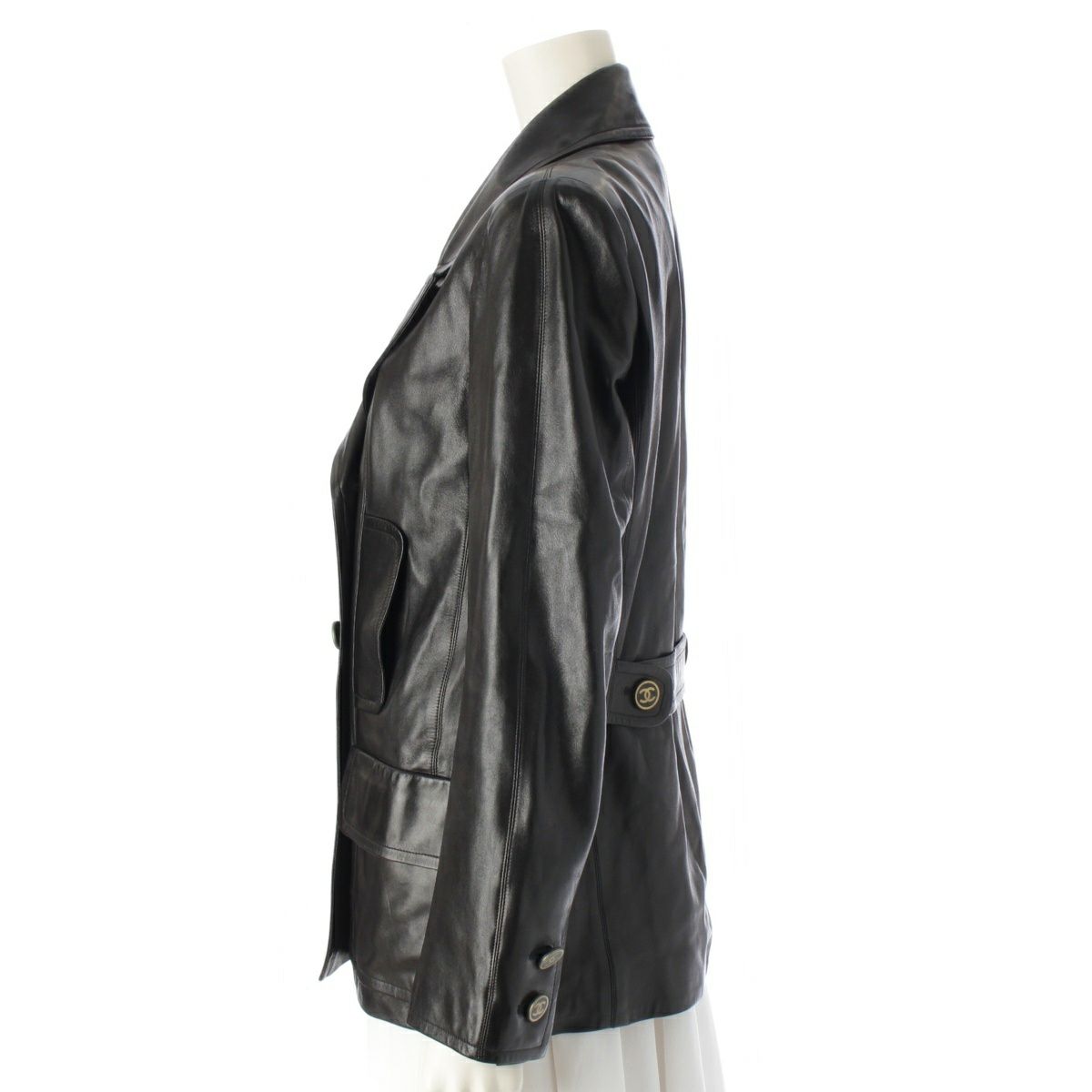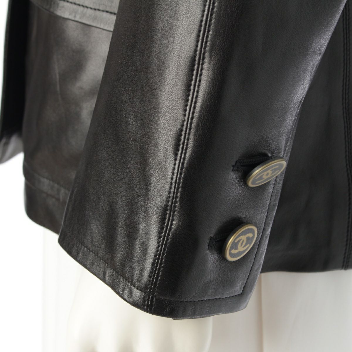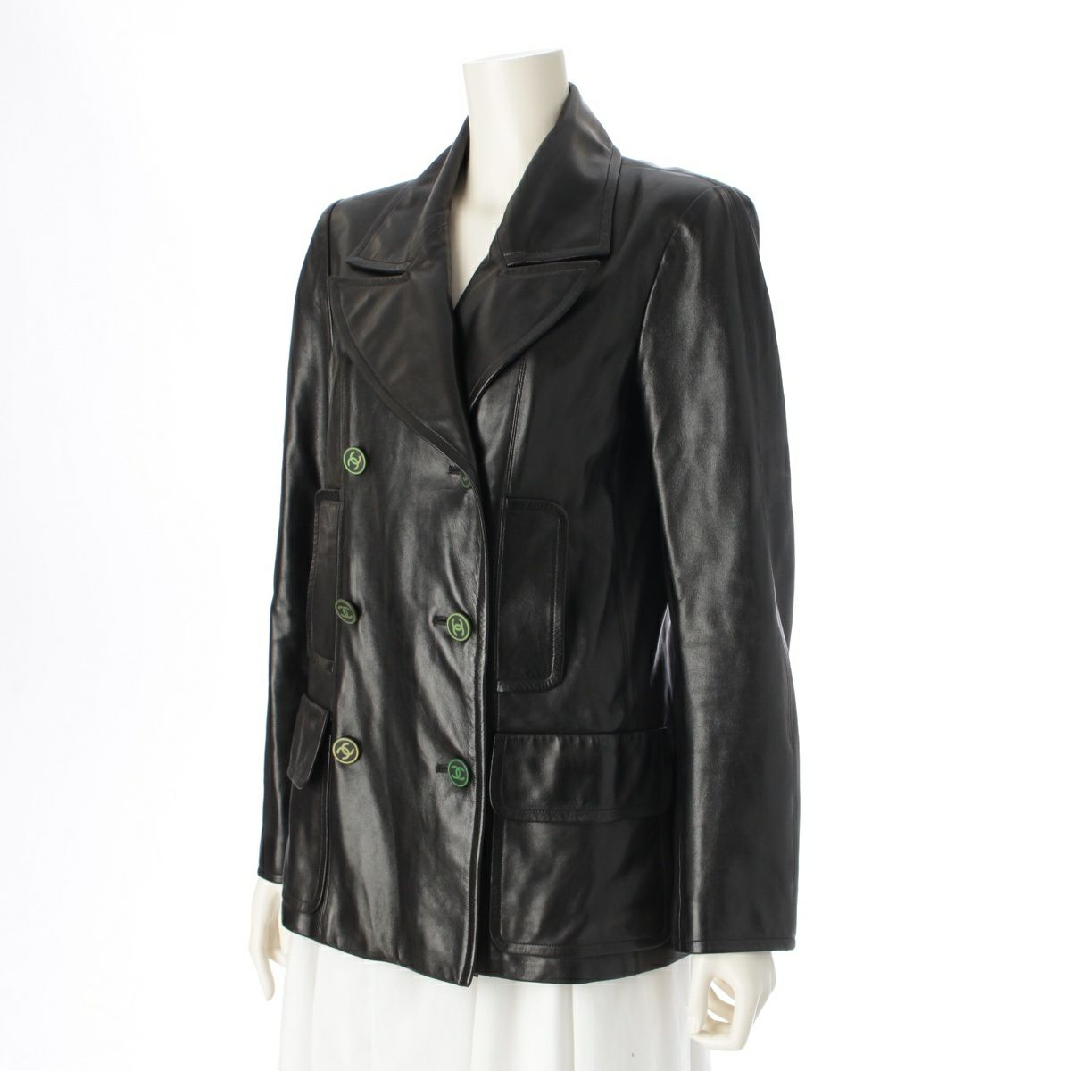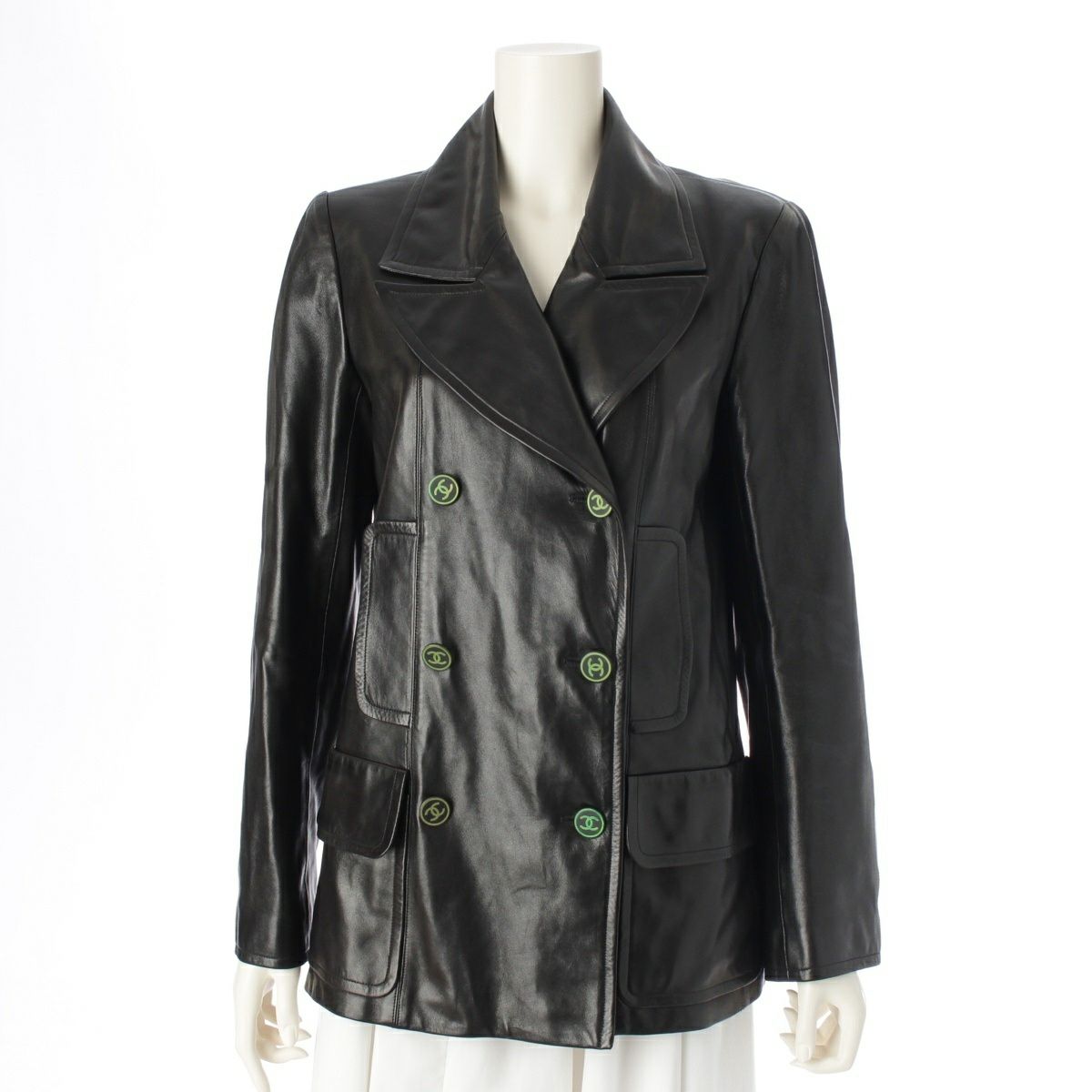 シャネル 01A ラムスキン ココボタン ダブルブレスト テーラードジャケット コート P18562V00984 ブラック 38