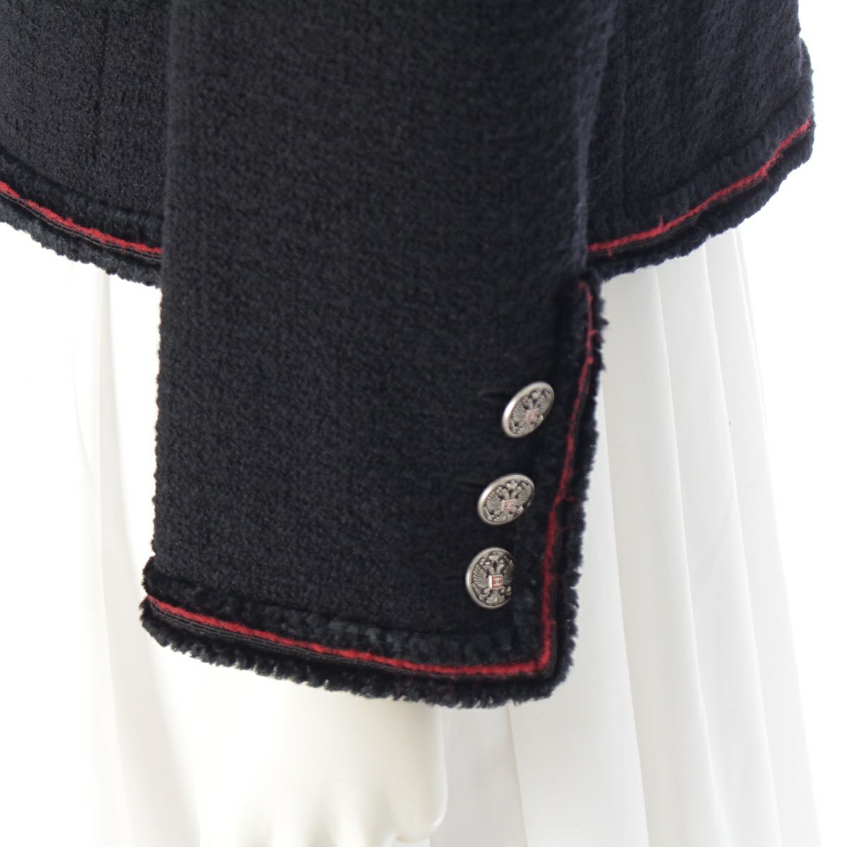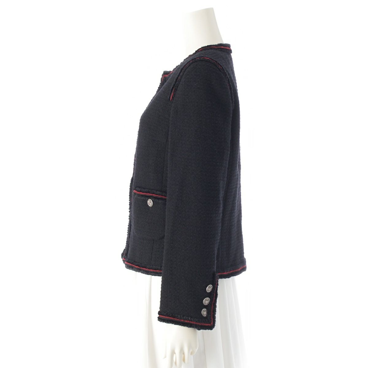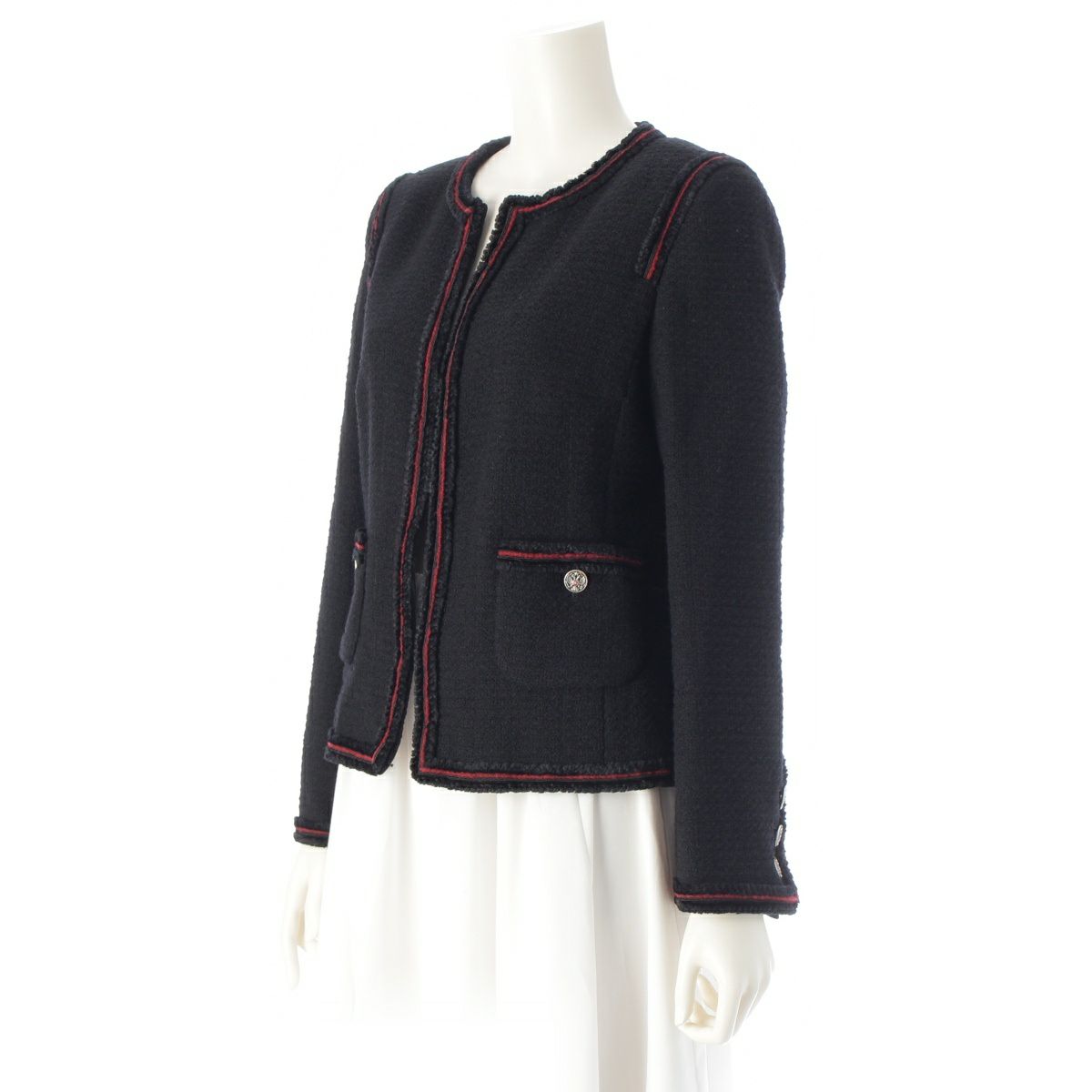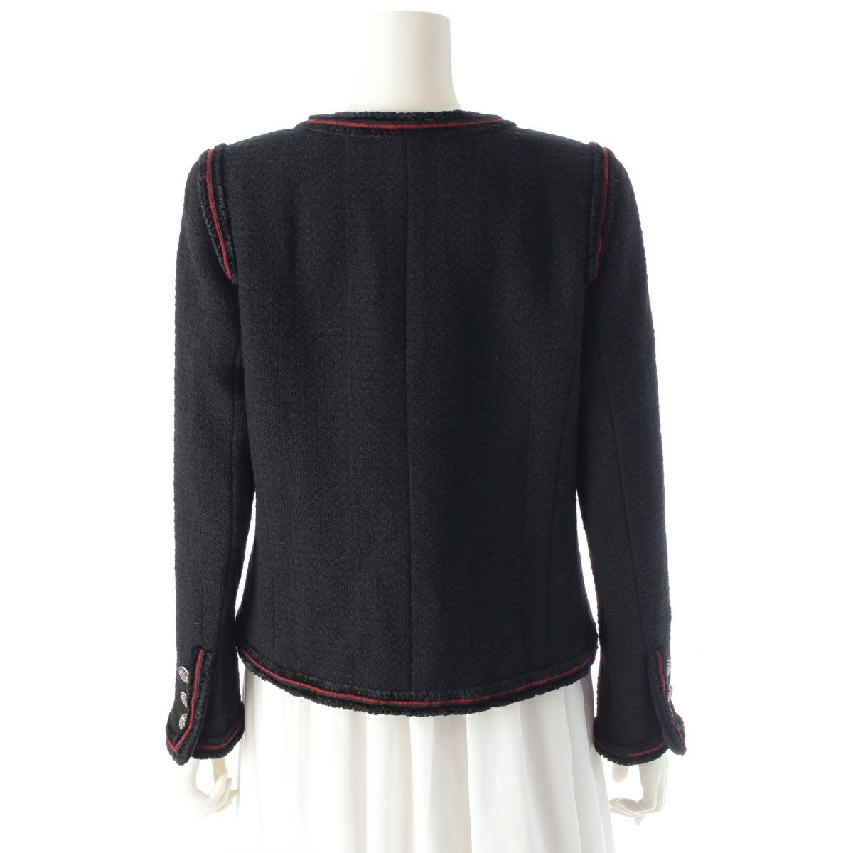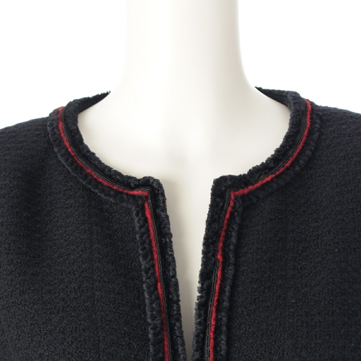シャネル ウール シルク シアリング ノーカラー テーラードジャケット P36021V24261 ブラック レッド 40