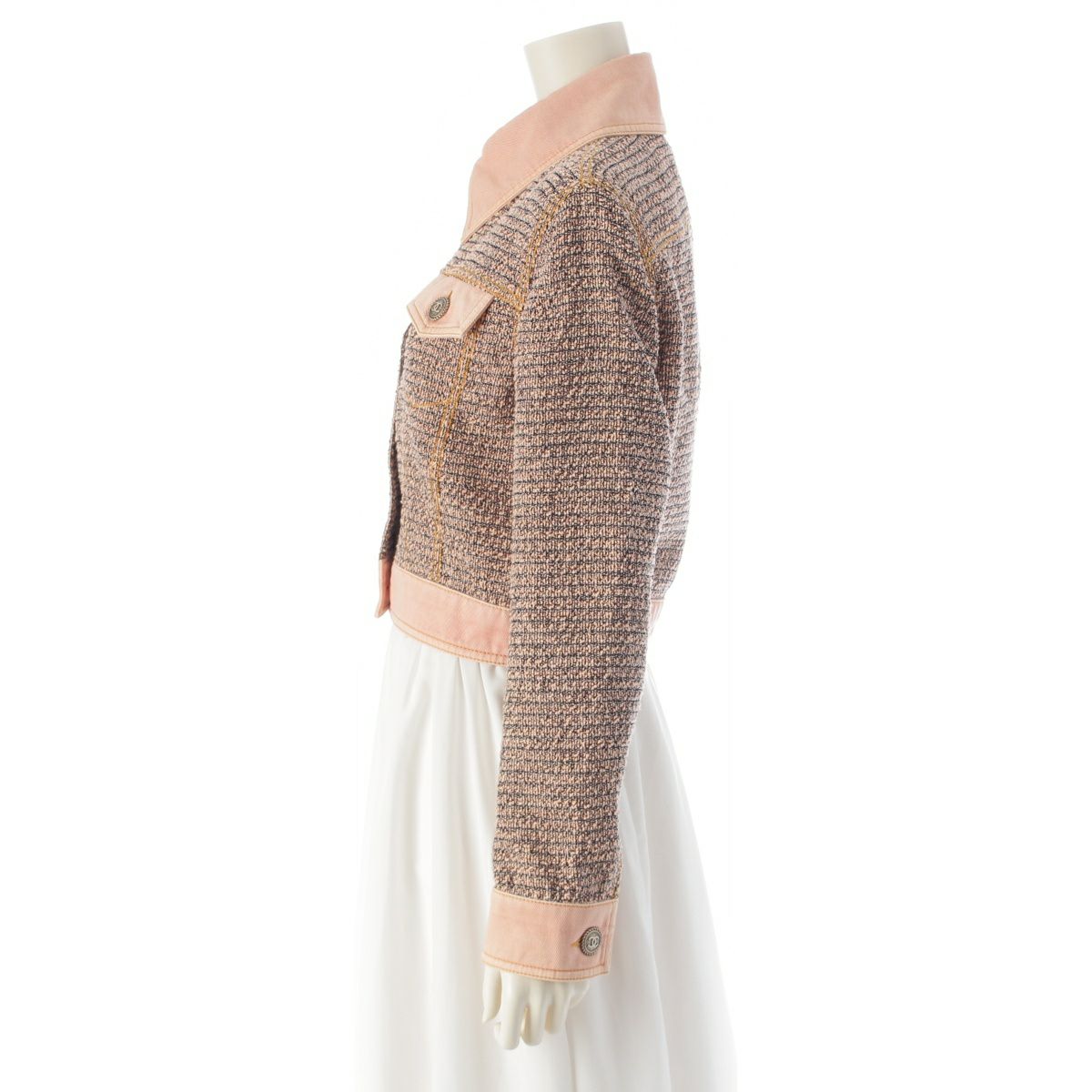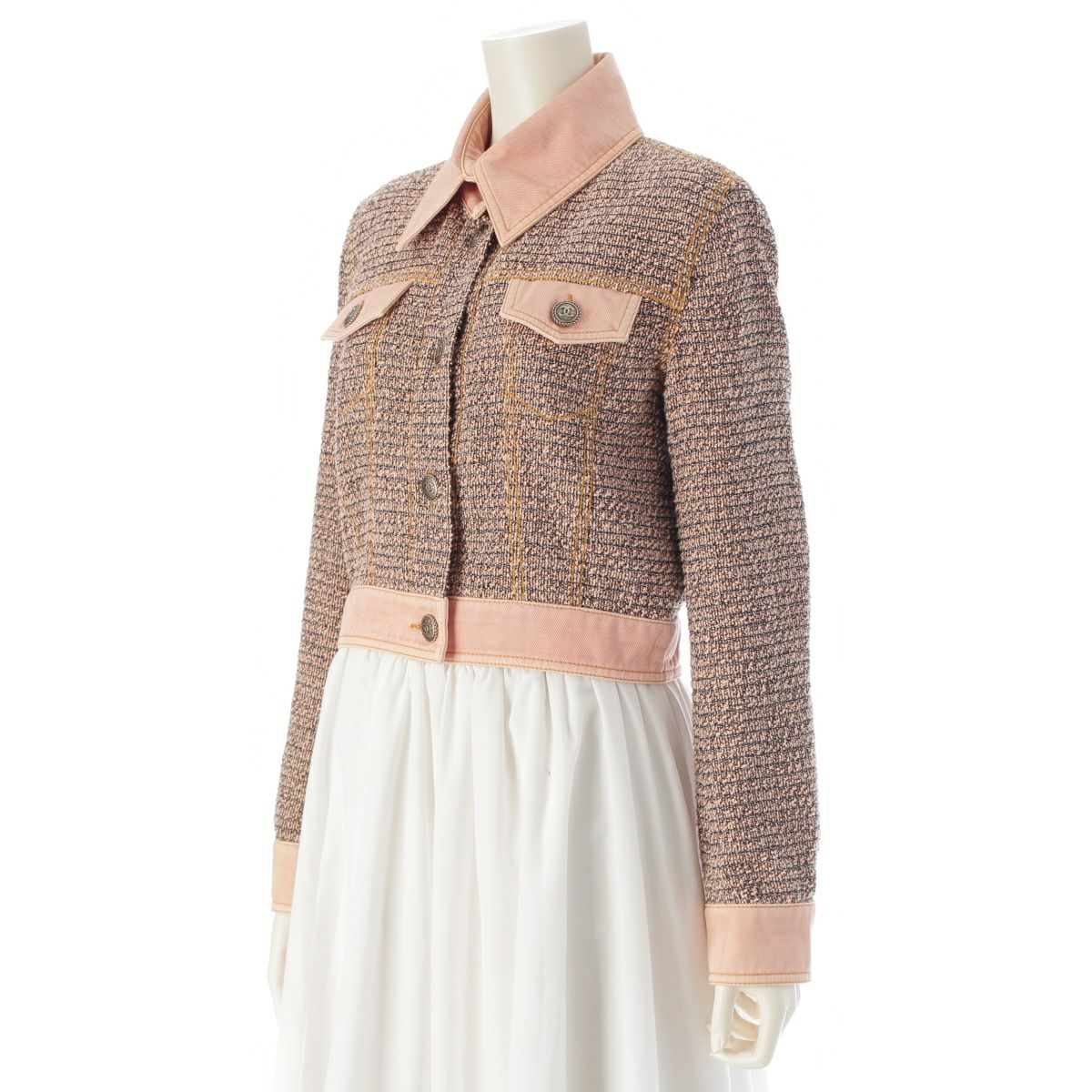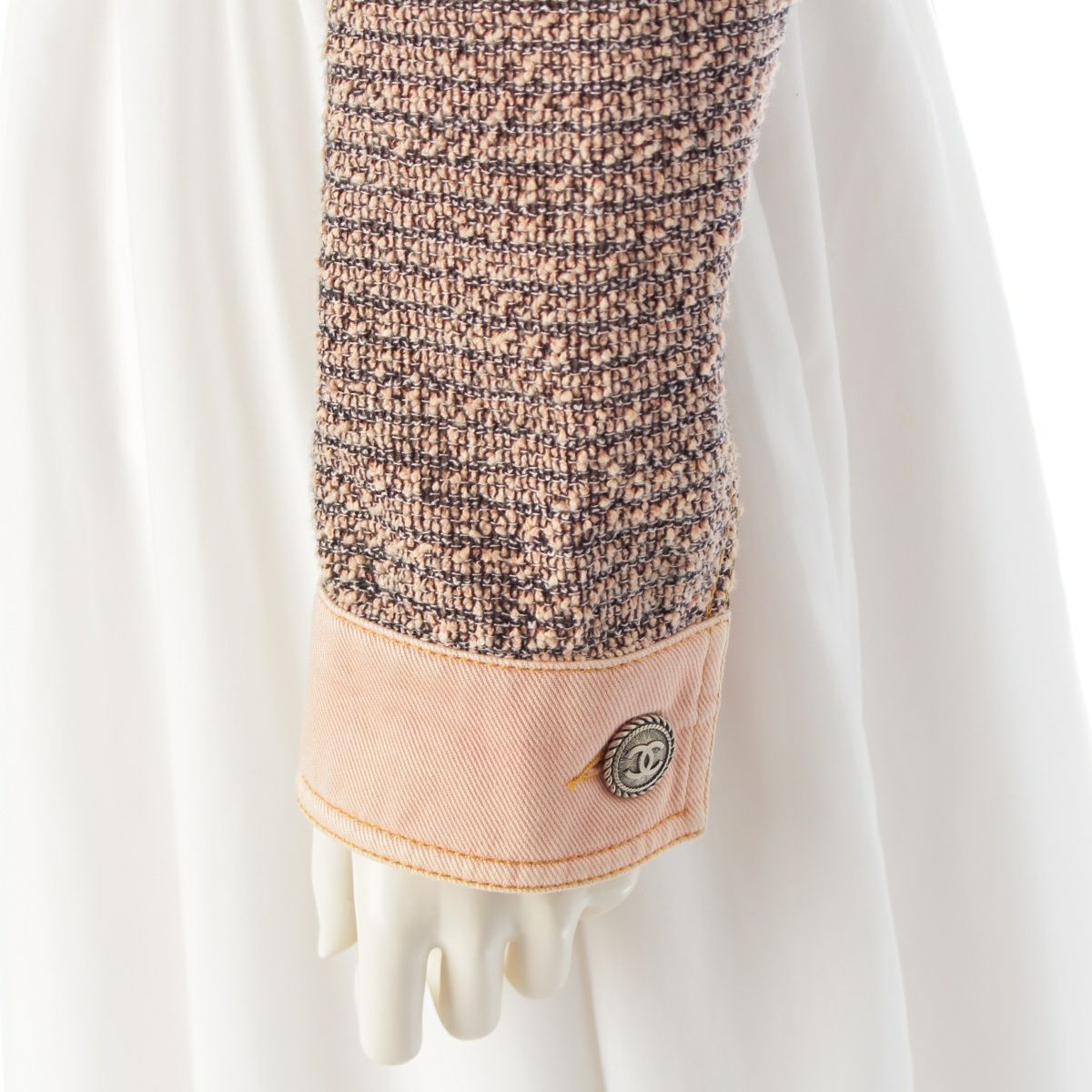 シャネル 18P コットン ココボタン ツイード デニム 切替 トラッカー テーラードジャケット P58316 ピンク マルチカラー 36