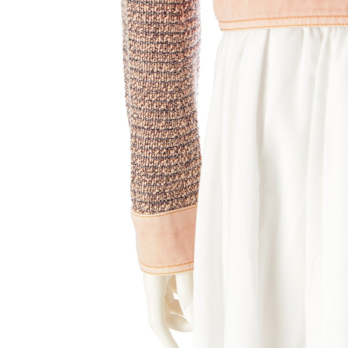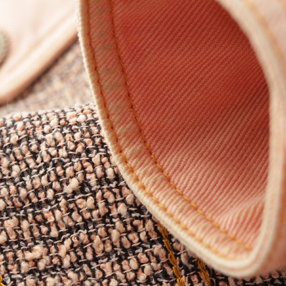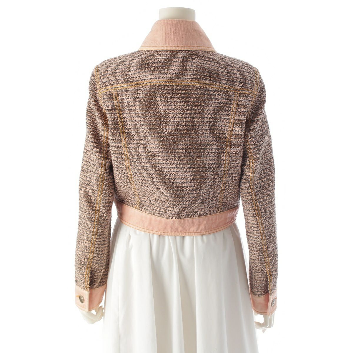 シャネル 18P コットン ココボタン ツイード デニム 切替 トラッカー テーラードジャケット P58316 ピンク マルチカラー 36