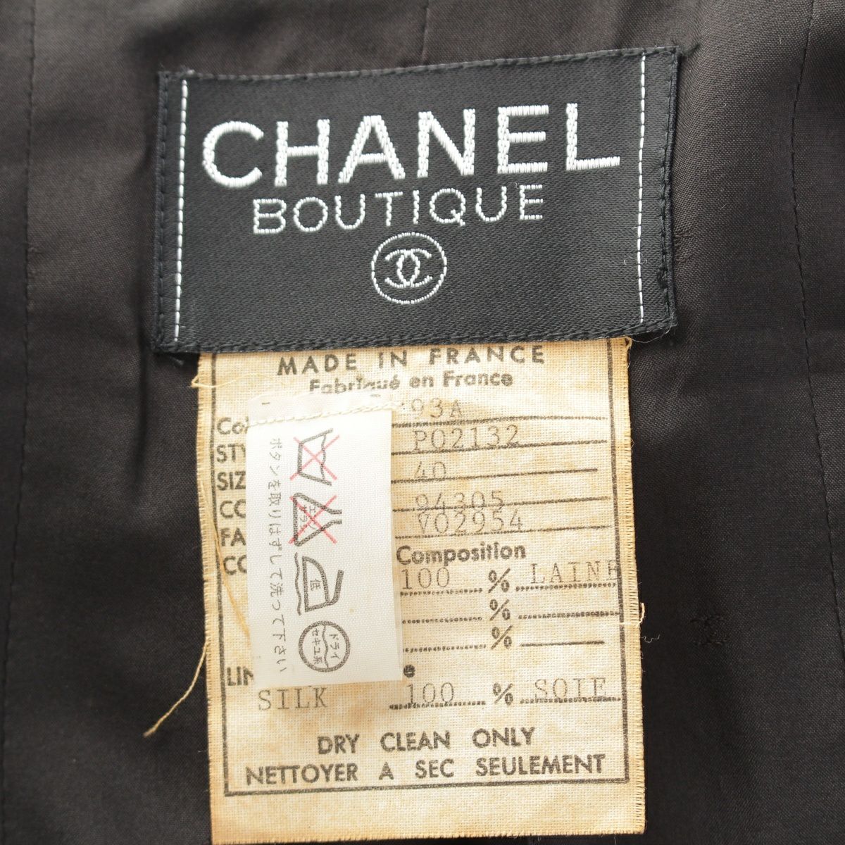 シャネル 93A ウール シルク ココボタン ダブルブレスト ロング テーラードジャケット P02123 ブラック 40