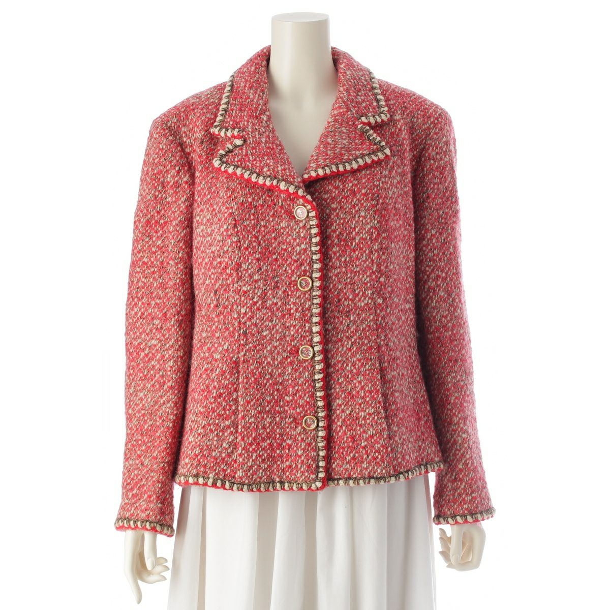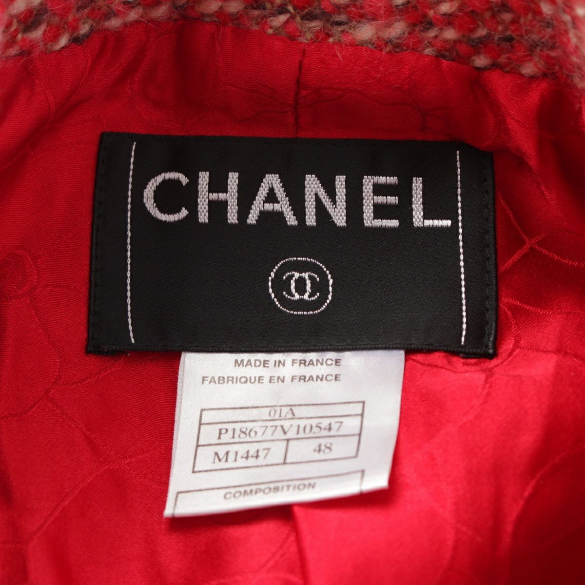 シャネル 01A ウール ツイード ココボタン テーラードジャケット アウター P18677 レッド 48