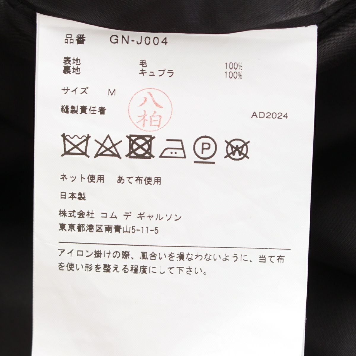 コムデギャルソン AD2024 24AW ウール 4本袖 双子 テーラードジャケット アウター GN-J004 ブラック M