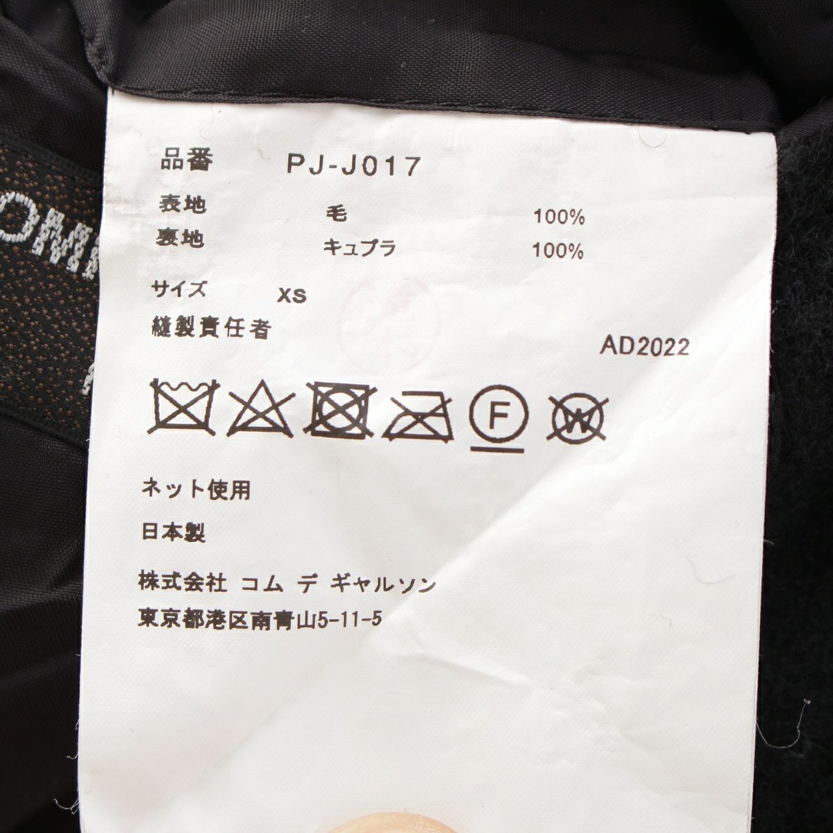 コムデギャルソンオムプリュス AD2022 ウール 縮絨 3B テーラードジャケット PJ-J017 ブラック XS