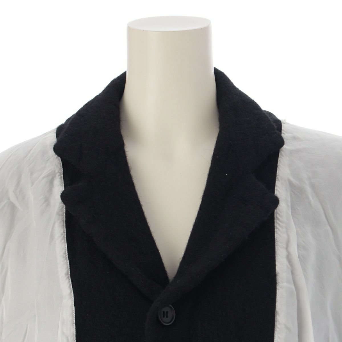 コムデギャルソン AD2021 レーヨン ウール 縮絨 ドッキング デザイン テーラードジャケット GH-J022 ホワイト ブラック XS