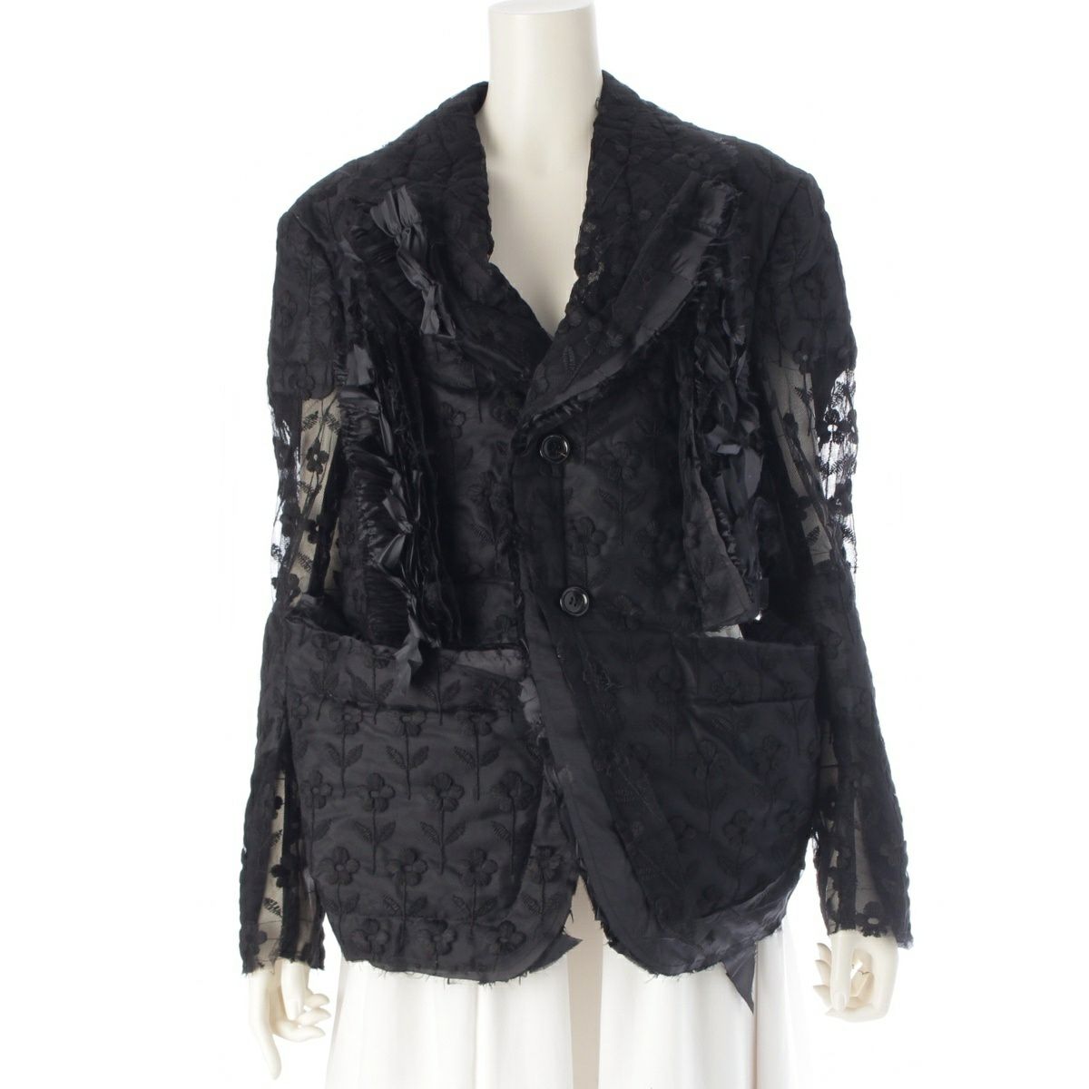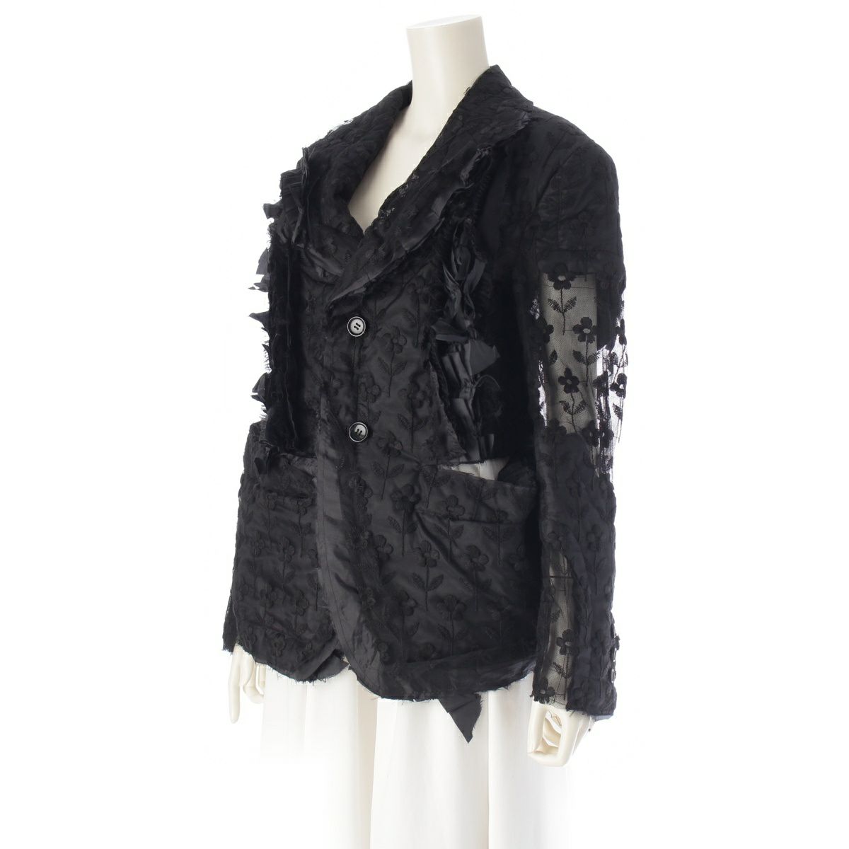 コムデギャルソン AD2017 ナイロン 総刺繍 断ち切り フリルデザイン 変形 テーラードジャケット GB-J001 ブラック XS