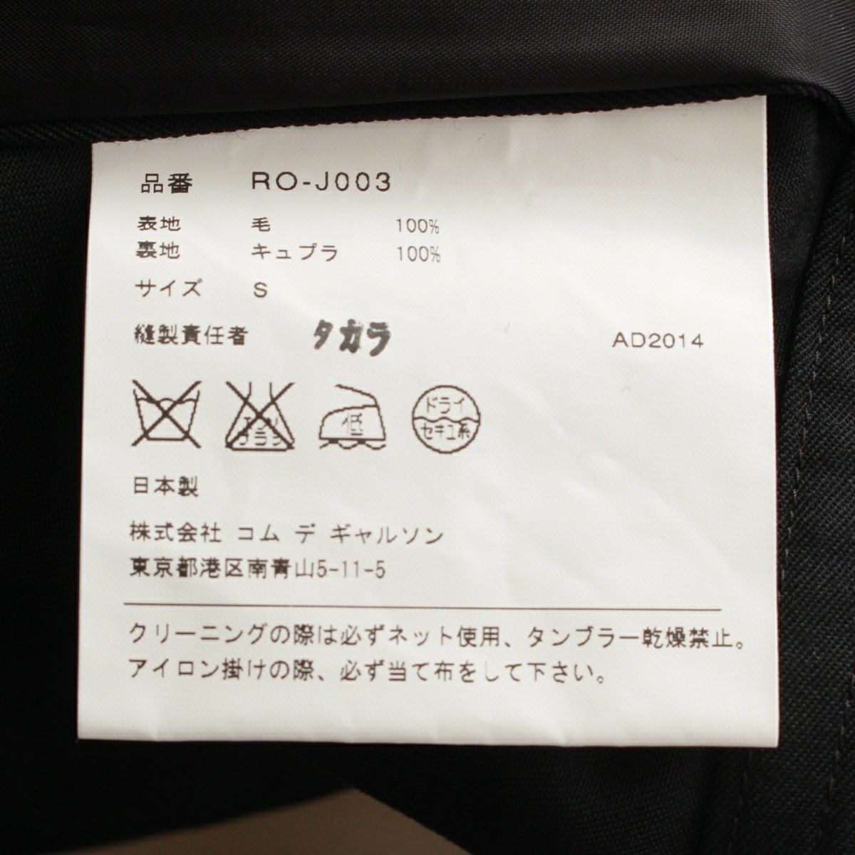 コムデギャルソン RO-J003 AD2014 裾ベルト ショート丈 デザイン テーラードジャケット ブラック S