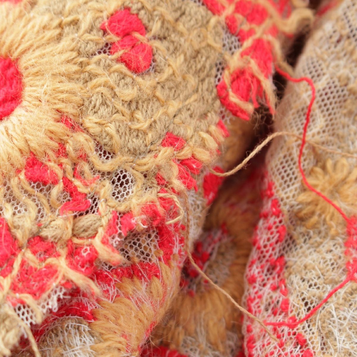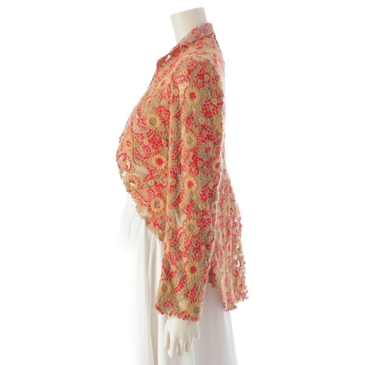 コムデギャルソン AD2003 コットン ウール 総刺繍 レース 燕尾 テーラードジャケット トップス GM-J009 ブラウン レッド S