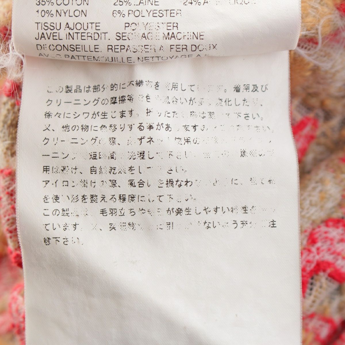 ダメージ箇所: 表面に毛羽立ち/毛玉/糸つれ、タグに印字薄れ、保管臭のようなニオイ