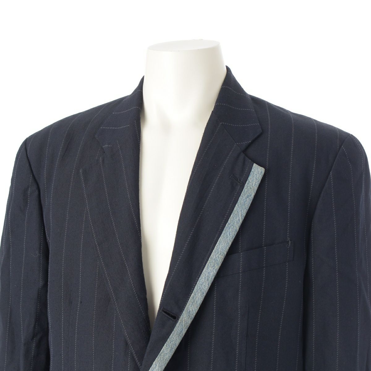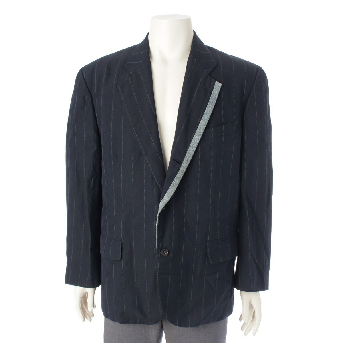 コムデギャルソンオムプリュス 92SS AD1991 デニム切替 ストライプ テーラードジャケット PJ-11019M ネイビー M