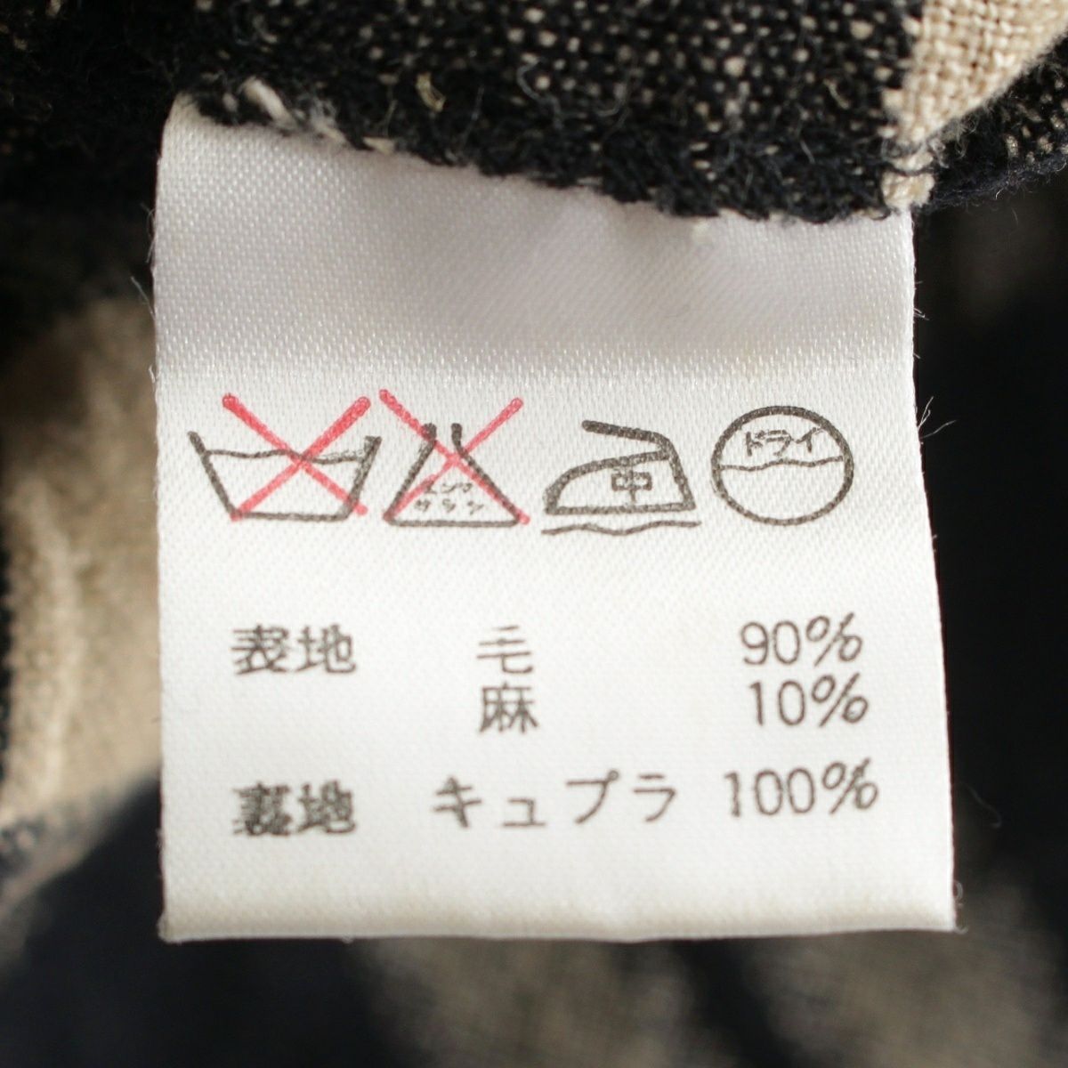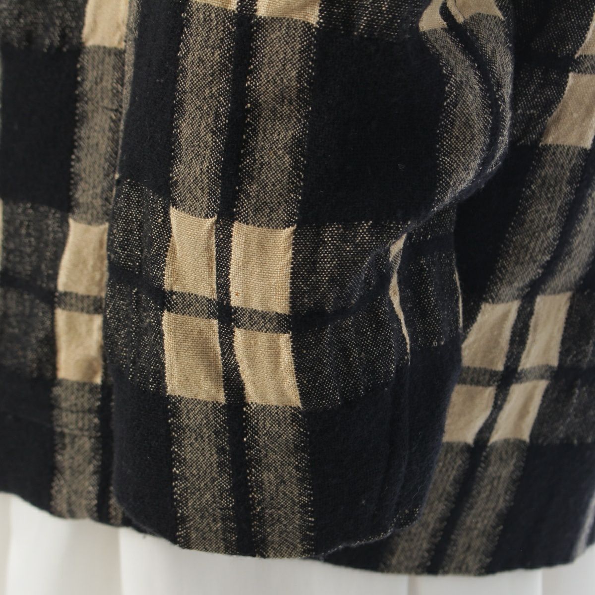 イッセイミヤケ 85年 80s ウール×リネン チェック柄 オーバーサイズ テーラードジャケット ブラック×ベージュ系 M
