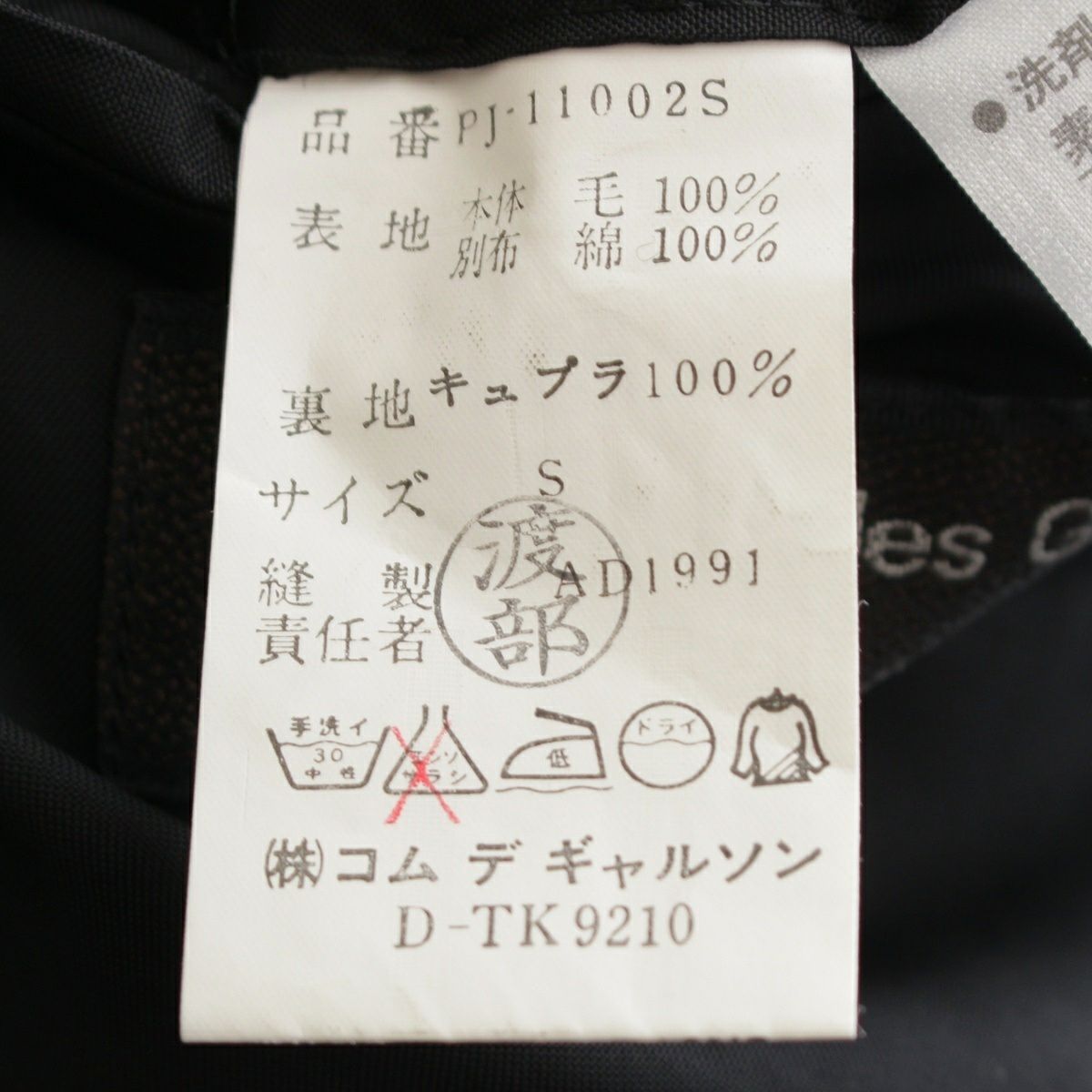 コムデギャルソンオムプリュス 92SS ウール エスニック期 ラペル切替 AD1991 テーラードジャケット ブラック S