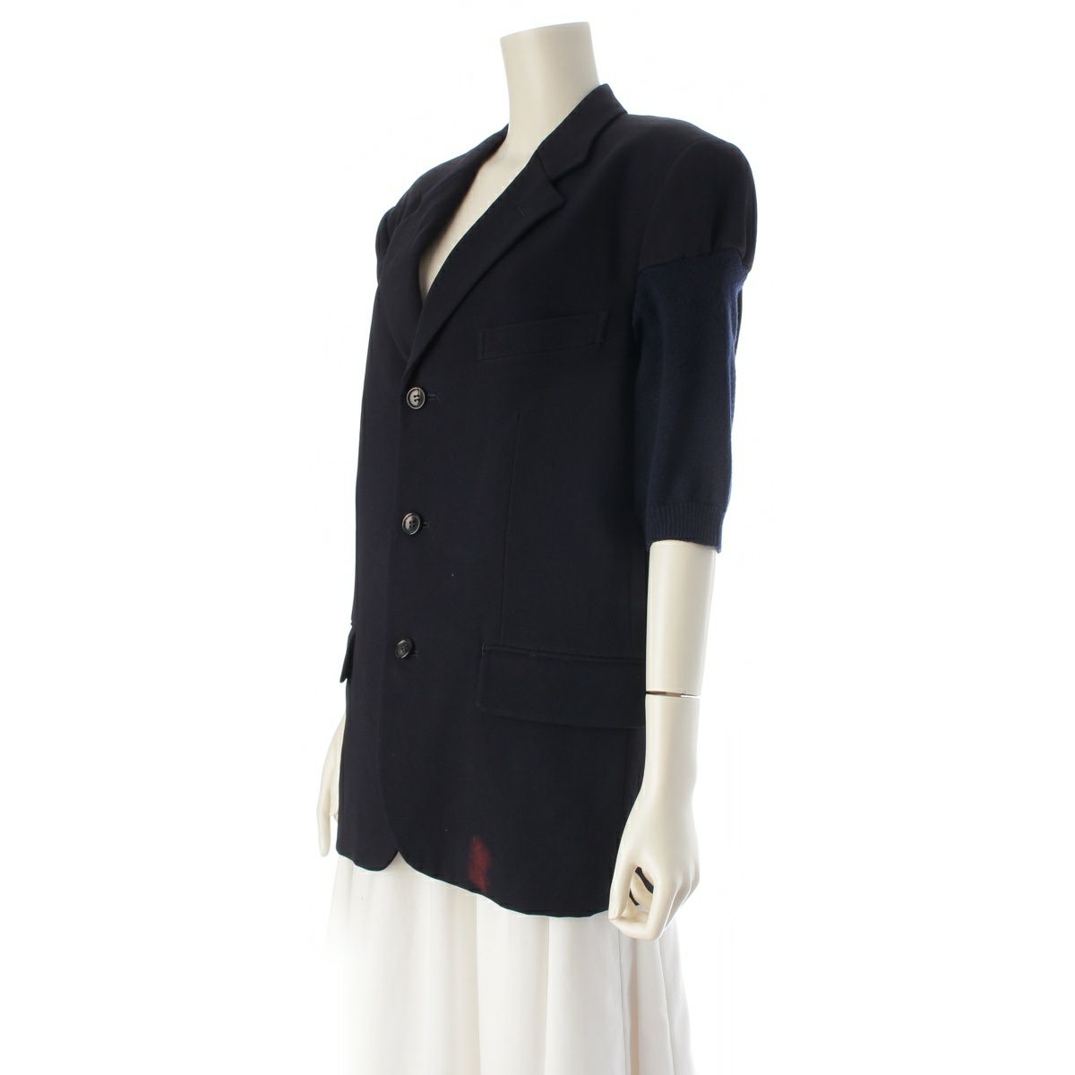 コムデギャルソン AD1993 93AW トリアセテート 袖ニット切替 半袖 テーラードジャケット GJ-04002S ネイビー S