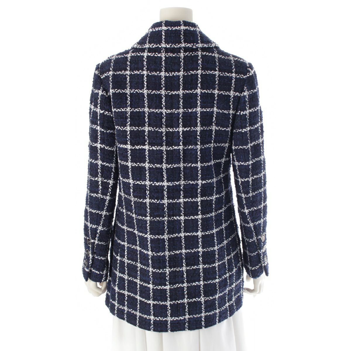 シャネル ツイード ココボタン チェック テーラードジャケット P76721 ブルー ホワイト 38
