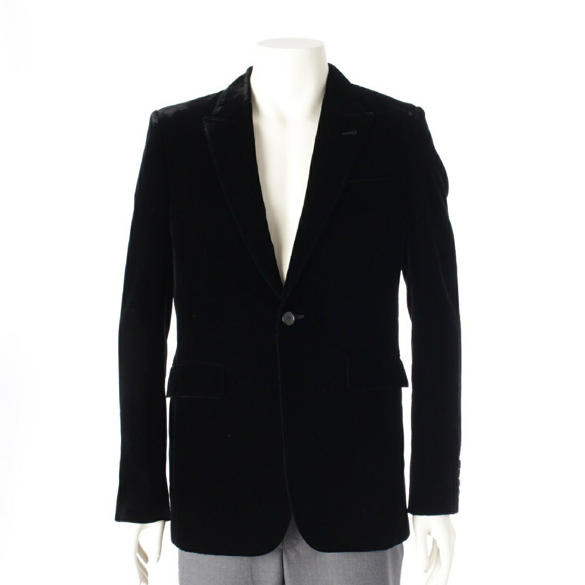 サンローラン 16AW エディスリマン期 ベルベッド ベロア調 1B シングル テーラードジャケット 433989 ブラック 46