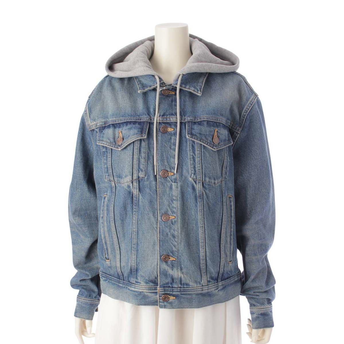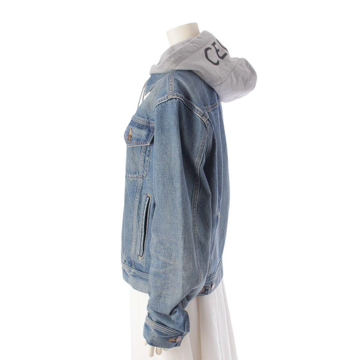 セリーヌ 22AW バイエディスリマン ロゴ フード デニム ジャケット 2Q472930F インディゴ S