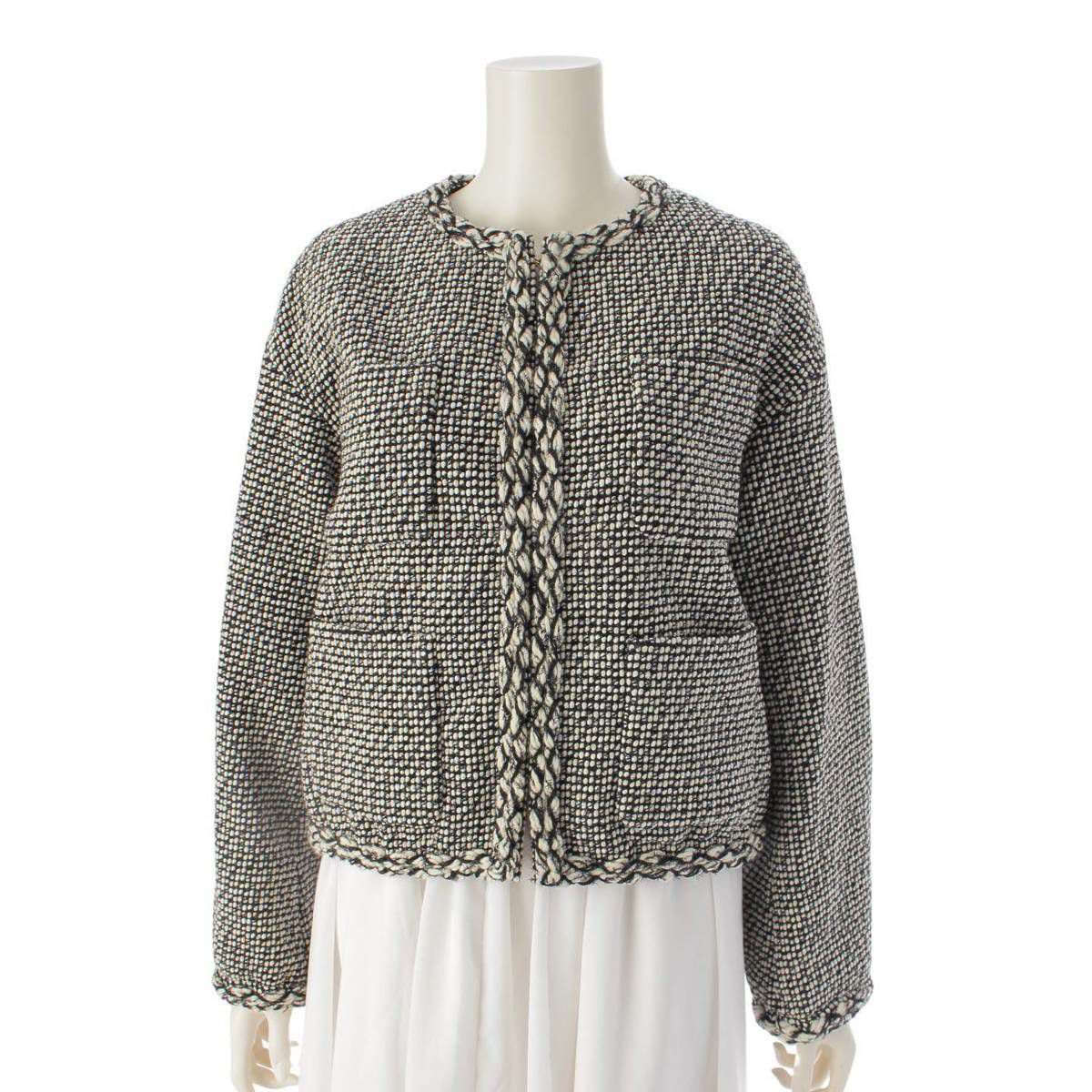 ドゥロワー DRAWER 22年 ノーカラー ツイード ジャケット トップス 6522-299-0724 ホワイト ブラック 36