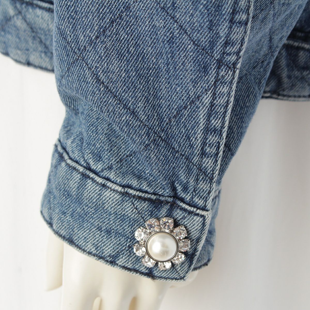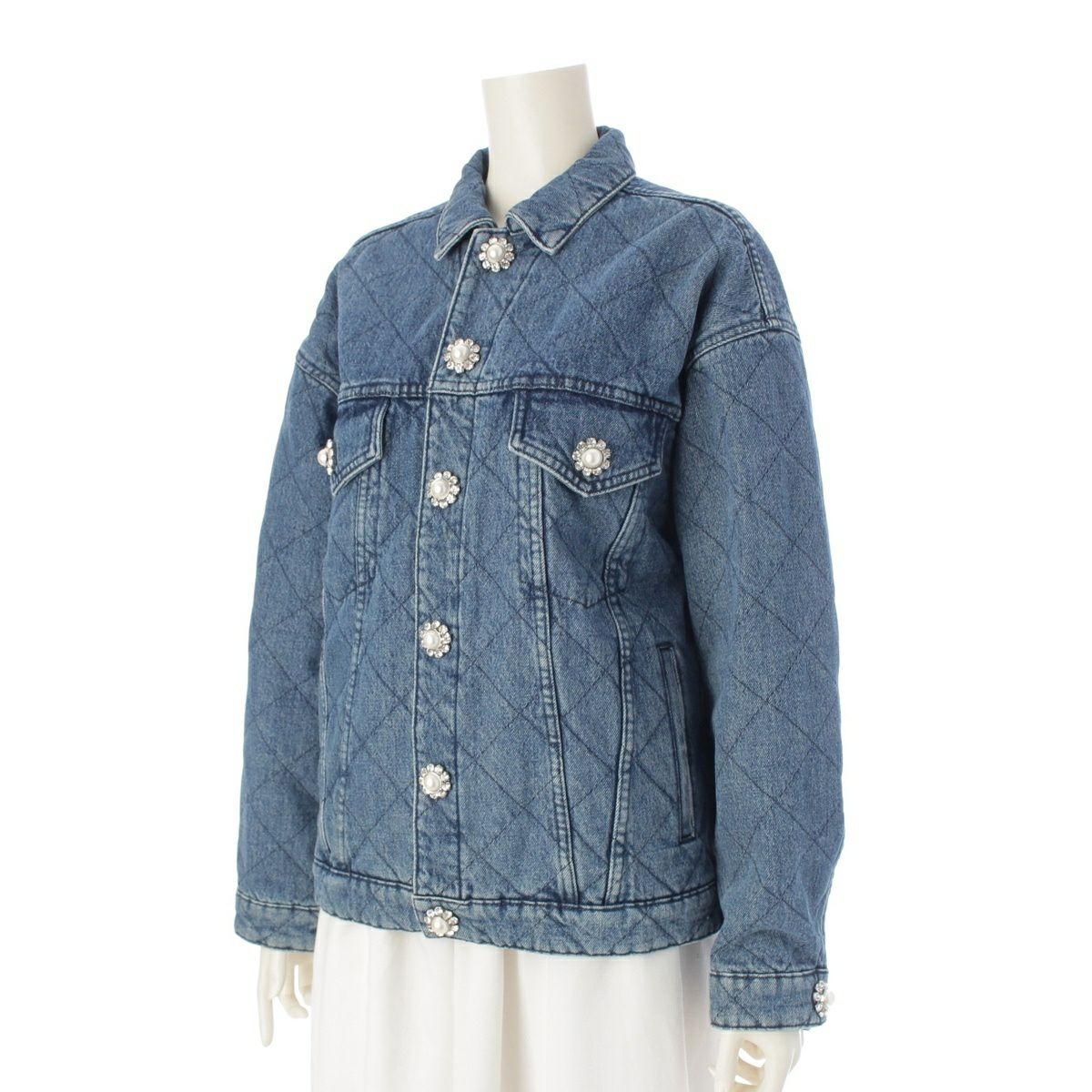 他の画像を見る MIUMIU ミュウミュウ 22年 コットンデニム キルティング 中綿 ビジュー パール テーラードジャケット アウター GWB132 ブルー 36 お気に入りに登録する 当店特別価格 ¥ 132,000 税込 円 120,000円