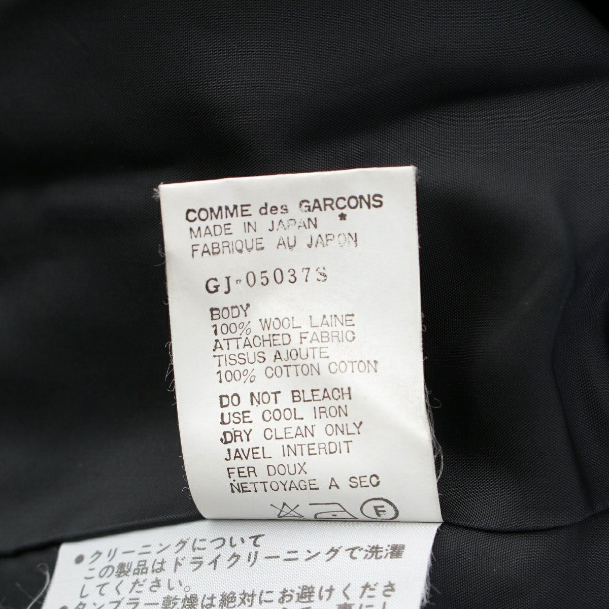 他の画像を見る COMME des GARCONS コムデギャルソン AD1993 93AW シルク 前身頃ウール切替 フック ロング テーラードジャケット GJ-04010M ネイビー ブラック M お気に入りに登録する 当店特別価格 ¥ 19,800 税込 円 18,000円