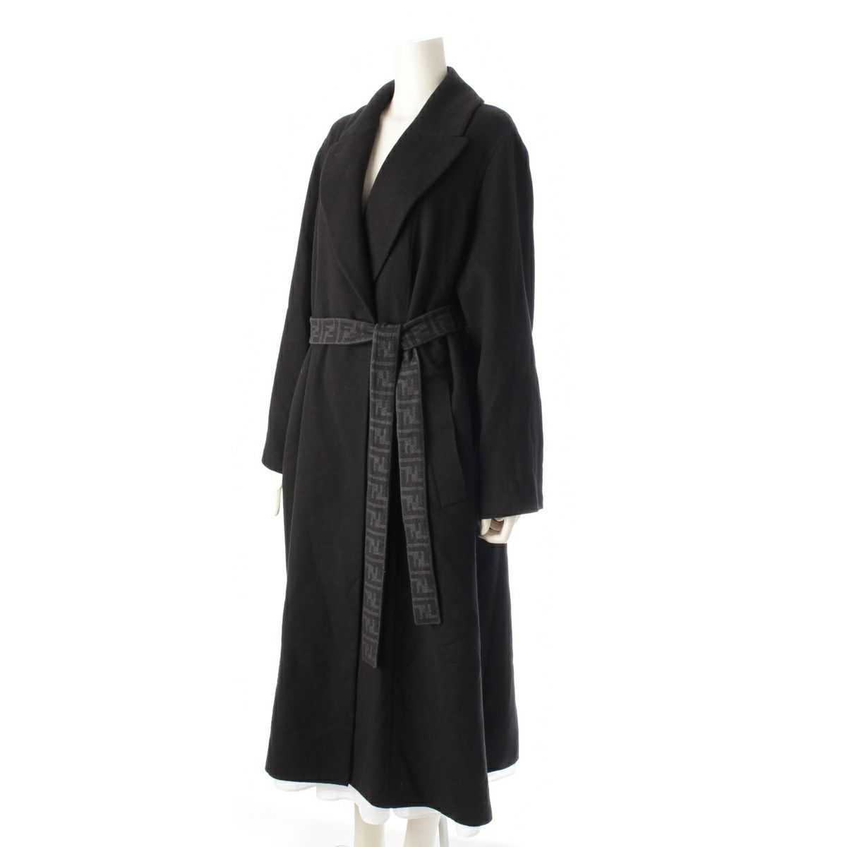 フェンディ 24AW ウール ズッカ ベルト付き トレンチコート 刺繍 アウター ロング丈 FF6031AM3Y ブラック 38