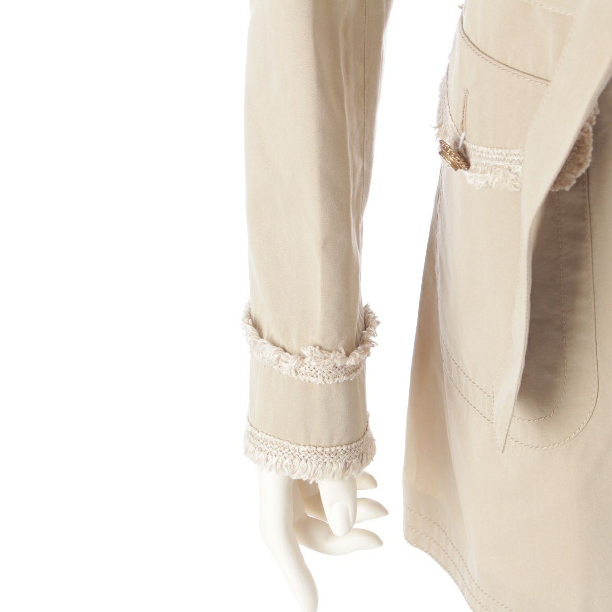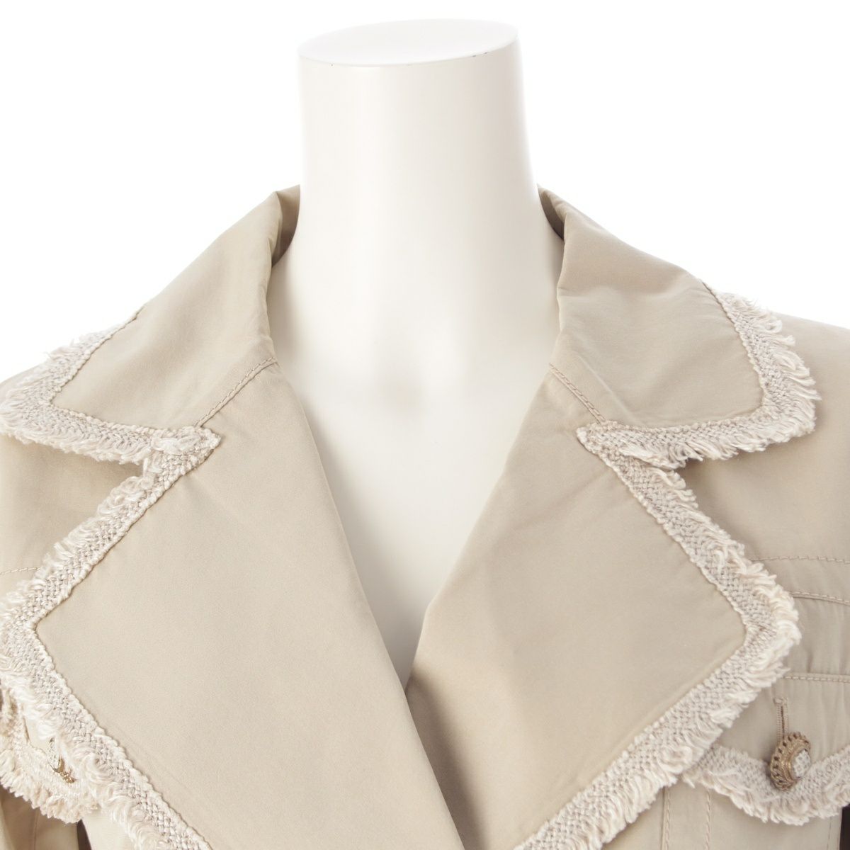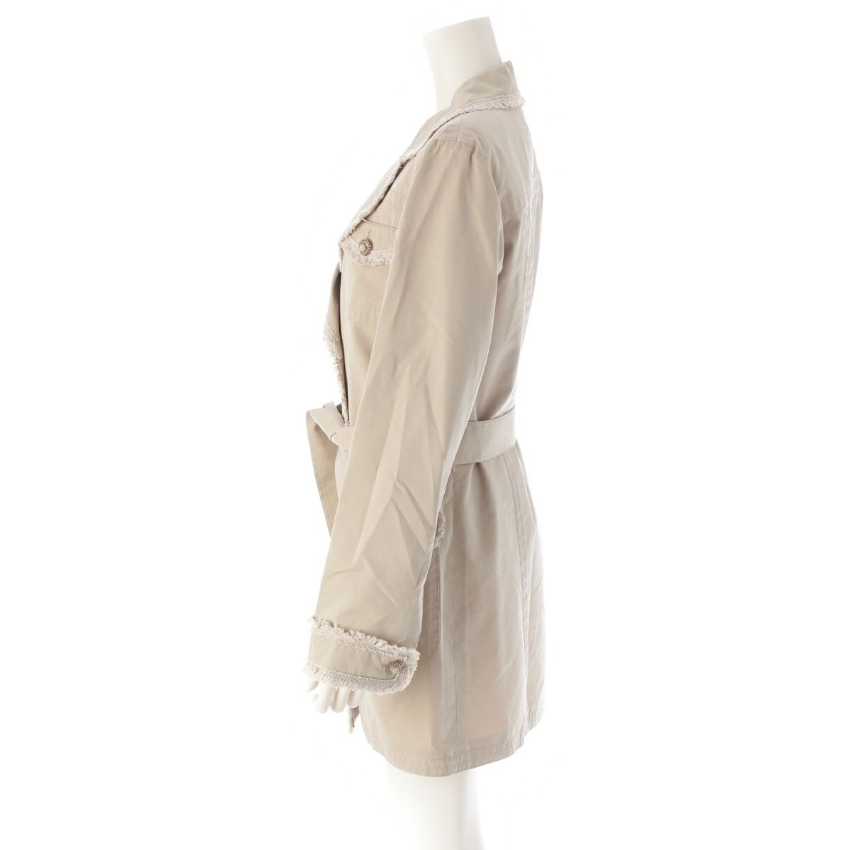 シャネル シルク コットン ツイードフリル ベルト付き トレンチコート アウター P38356 ベージュ 38