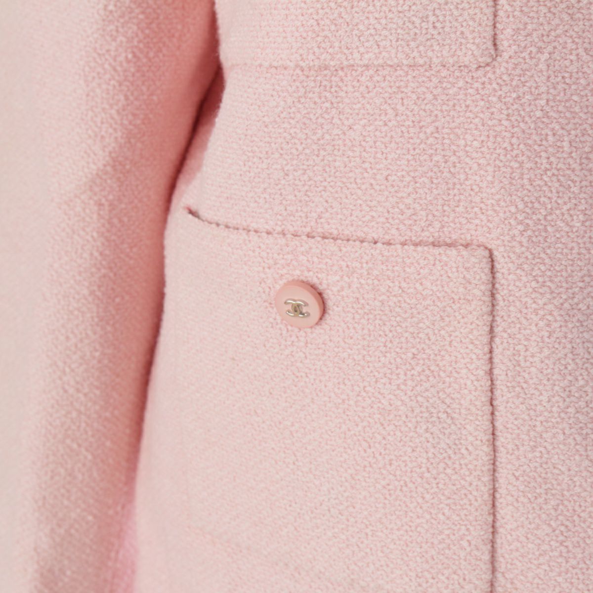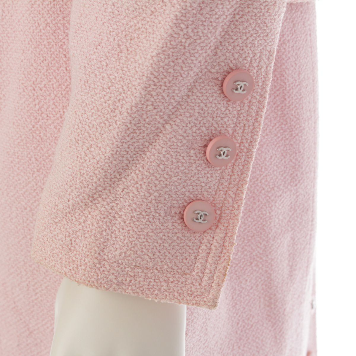 シャネル 96P コットン ツイード ヴィンテージ ココボタン カメリア ジャケット スカートセットアップ 落書き裏地 4ポケット P07027 ピンク 40