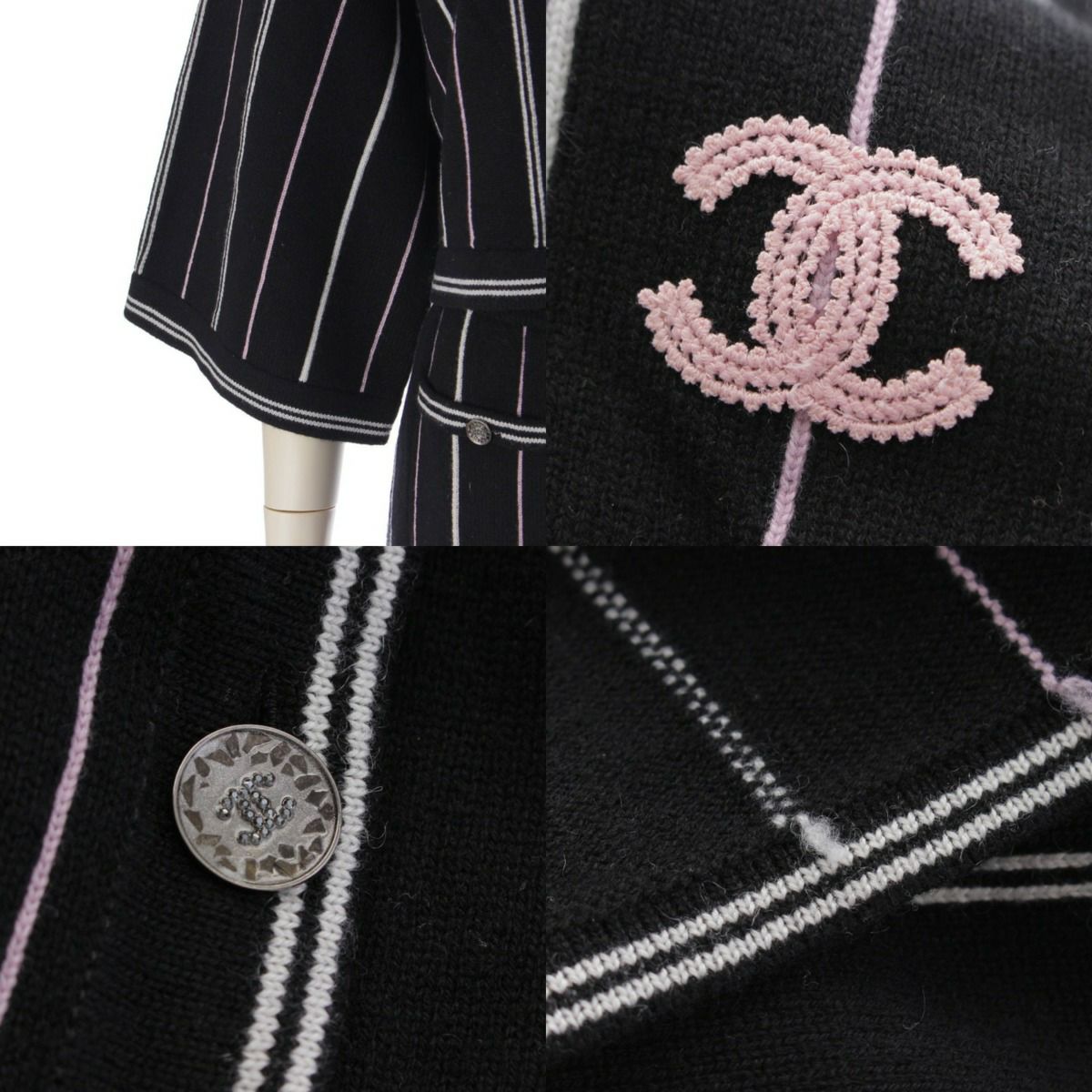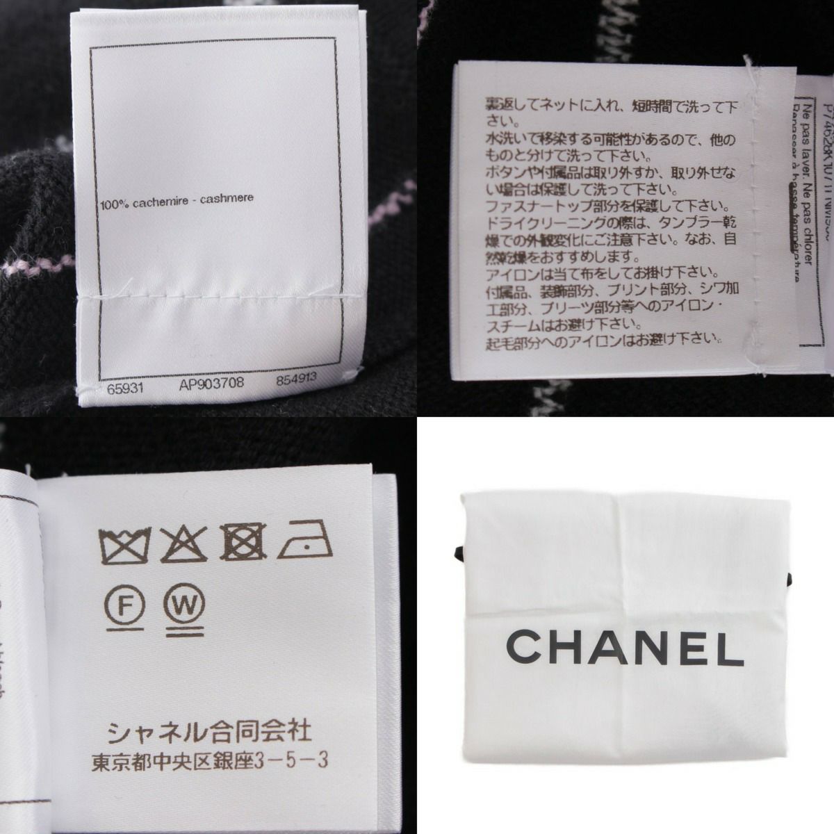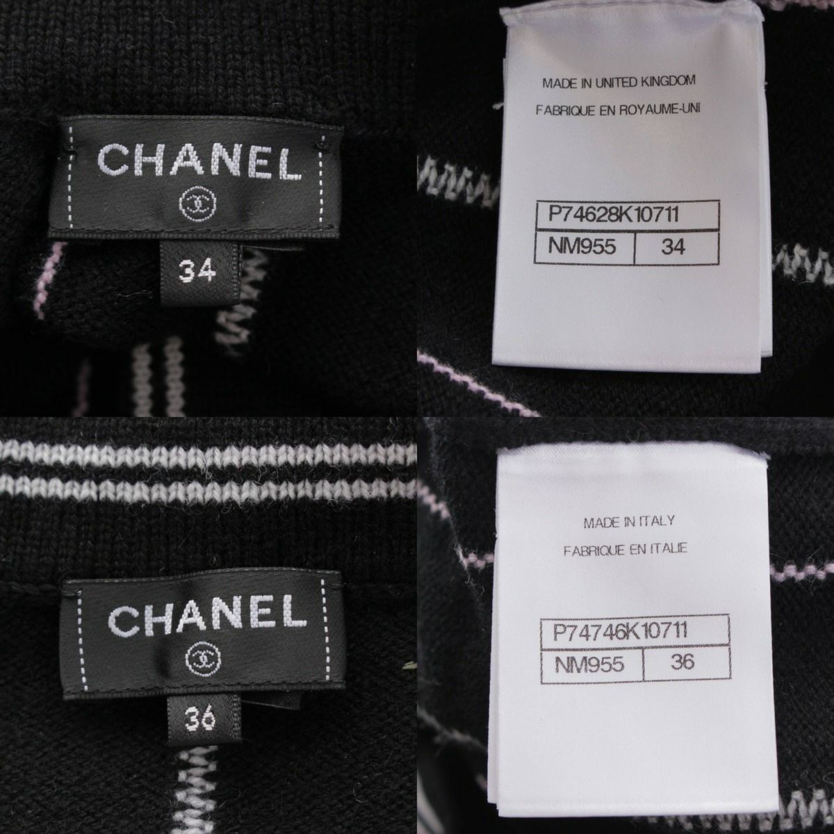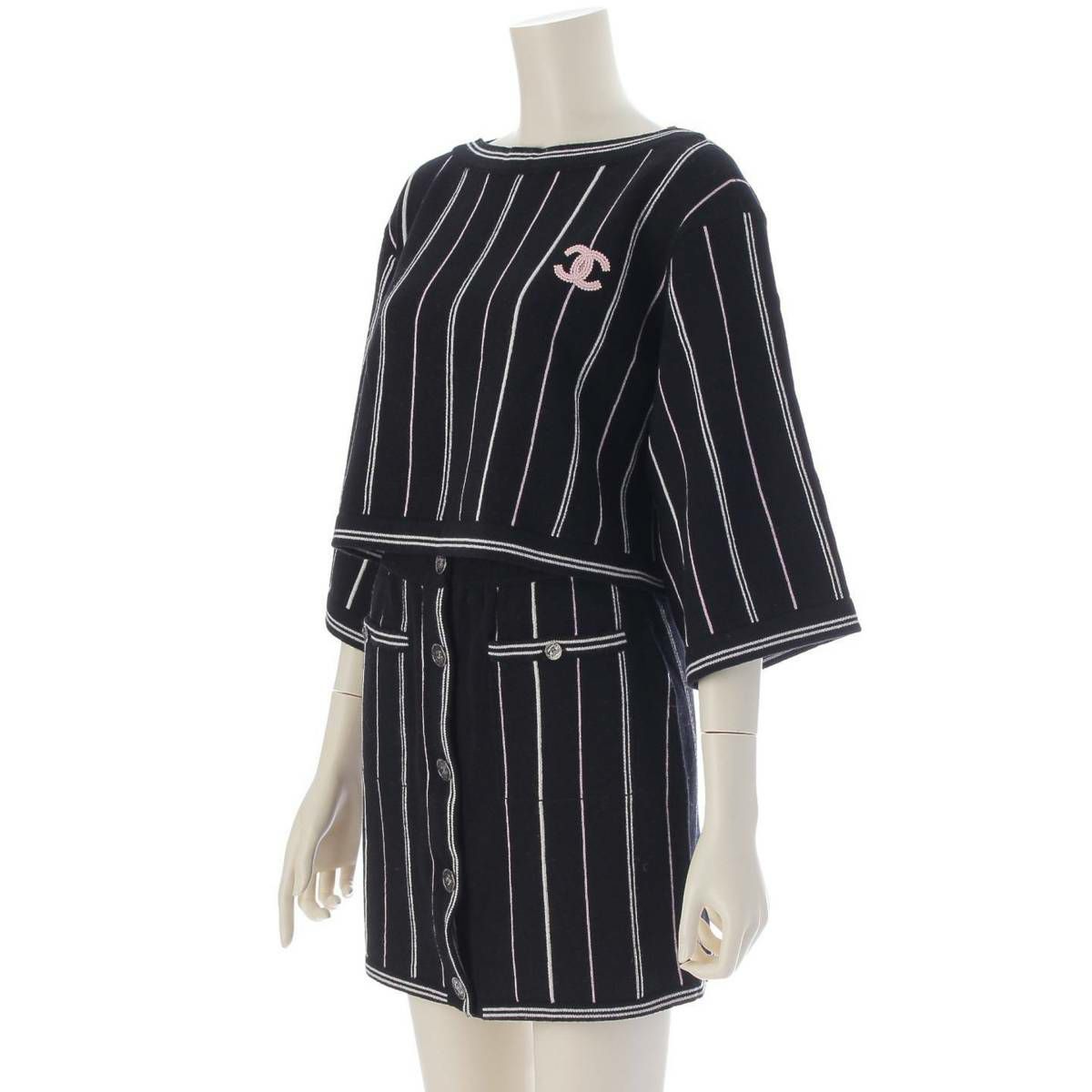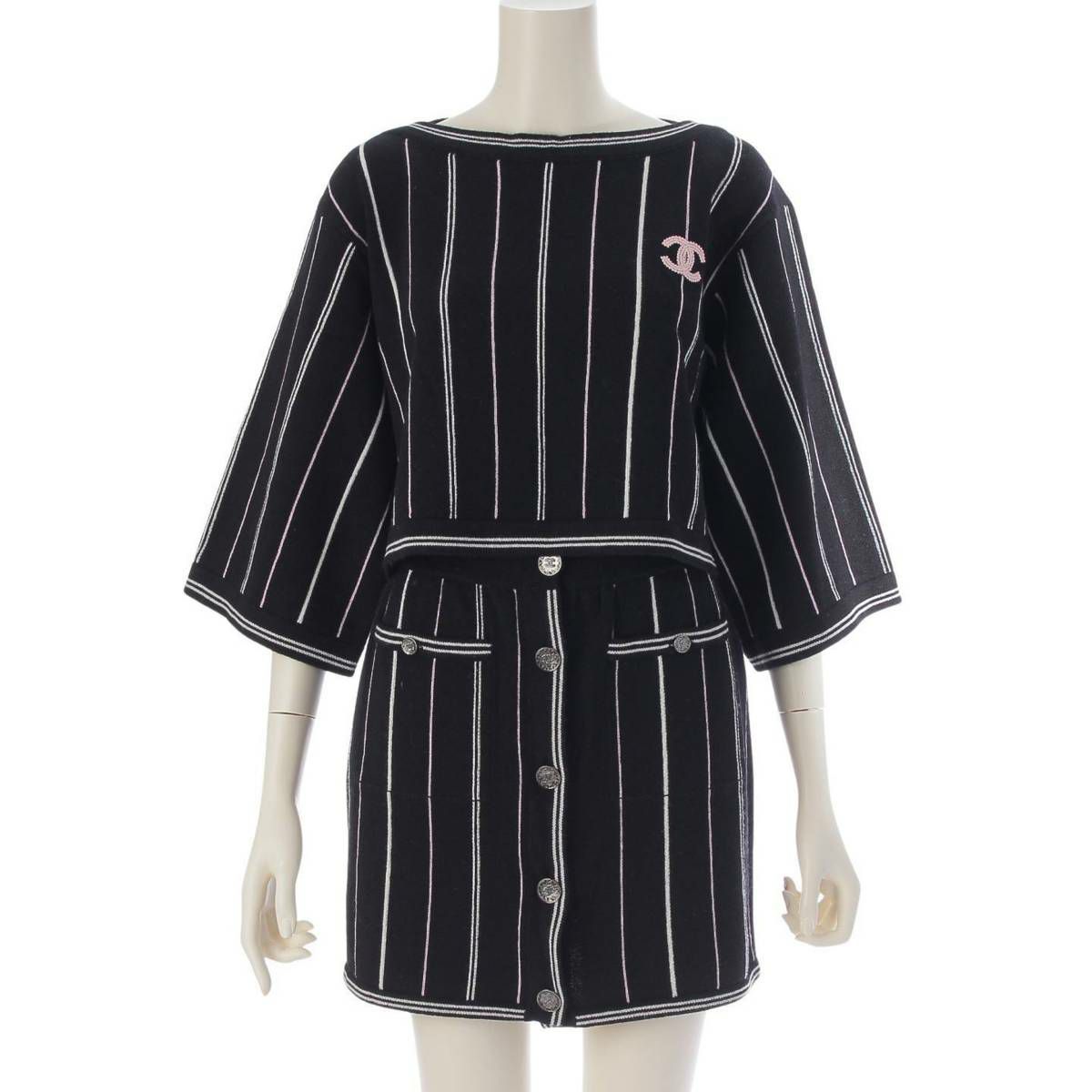 シャネル カシミヤ ココマーク ストライプ ニット トップス スカートセットアップ ブラック 34