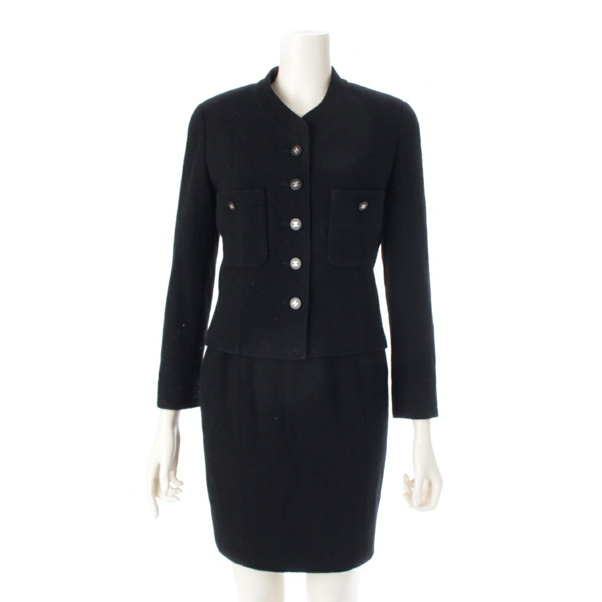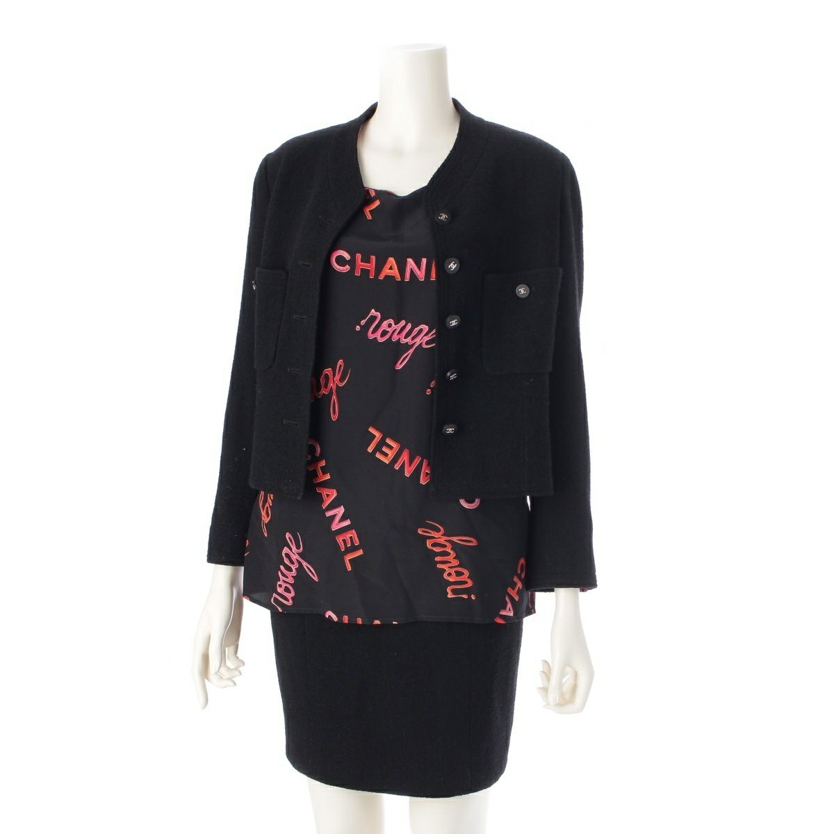 シャネル 96P ロゴ ジャケット トップス スカート 3ピース セットアップ P07026 ブラック 36