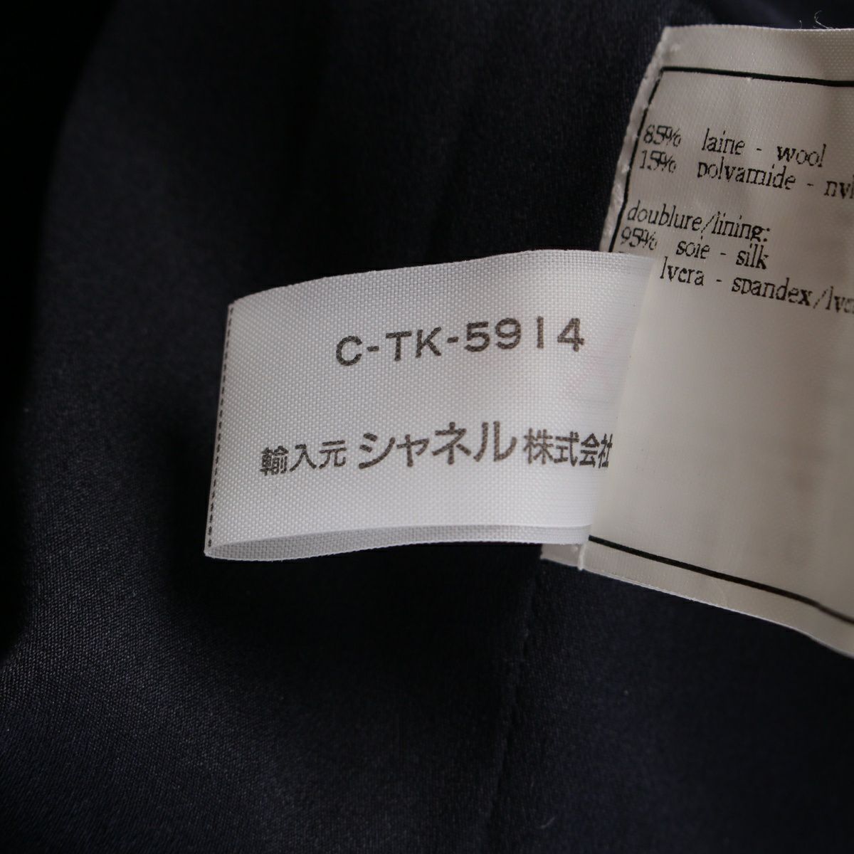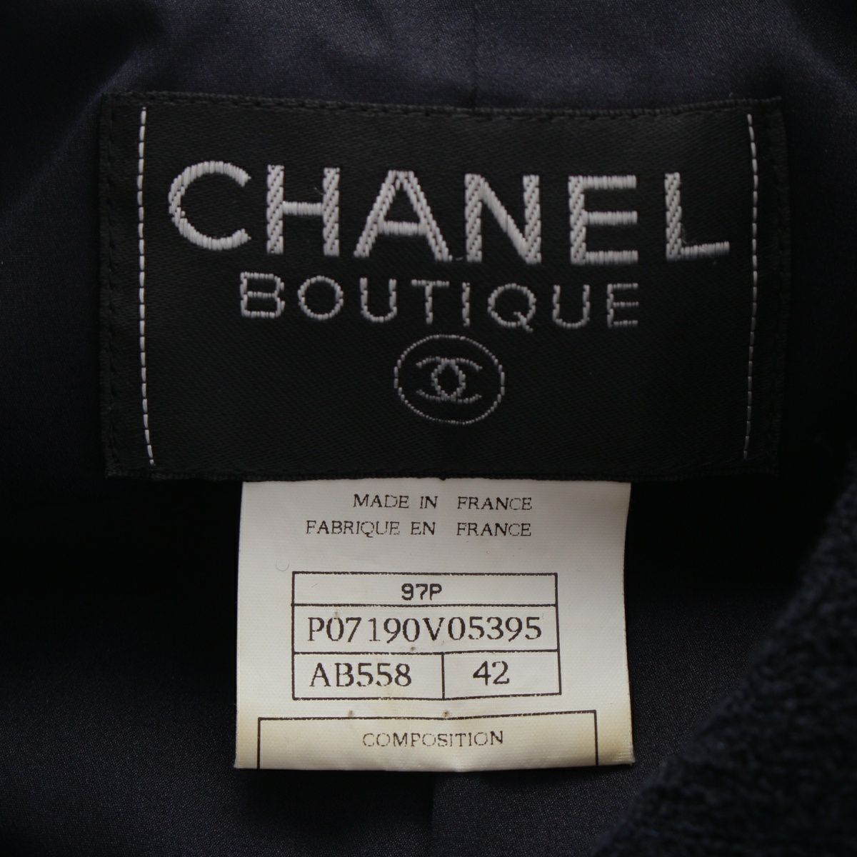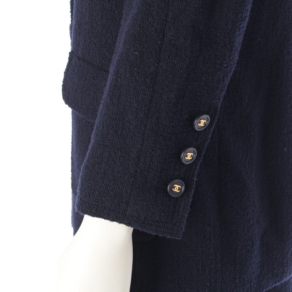 シャネル 97P ウール ツイード 裏シルク ロゴボタン ココマーク スカートセットアップ ジャケット P07190 ネイビー 42