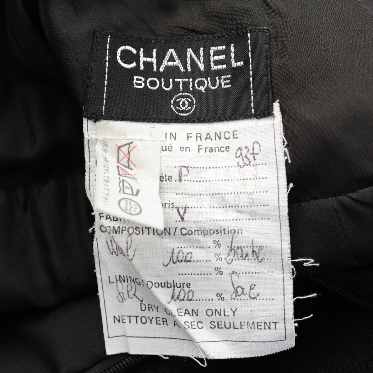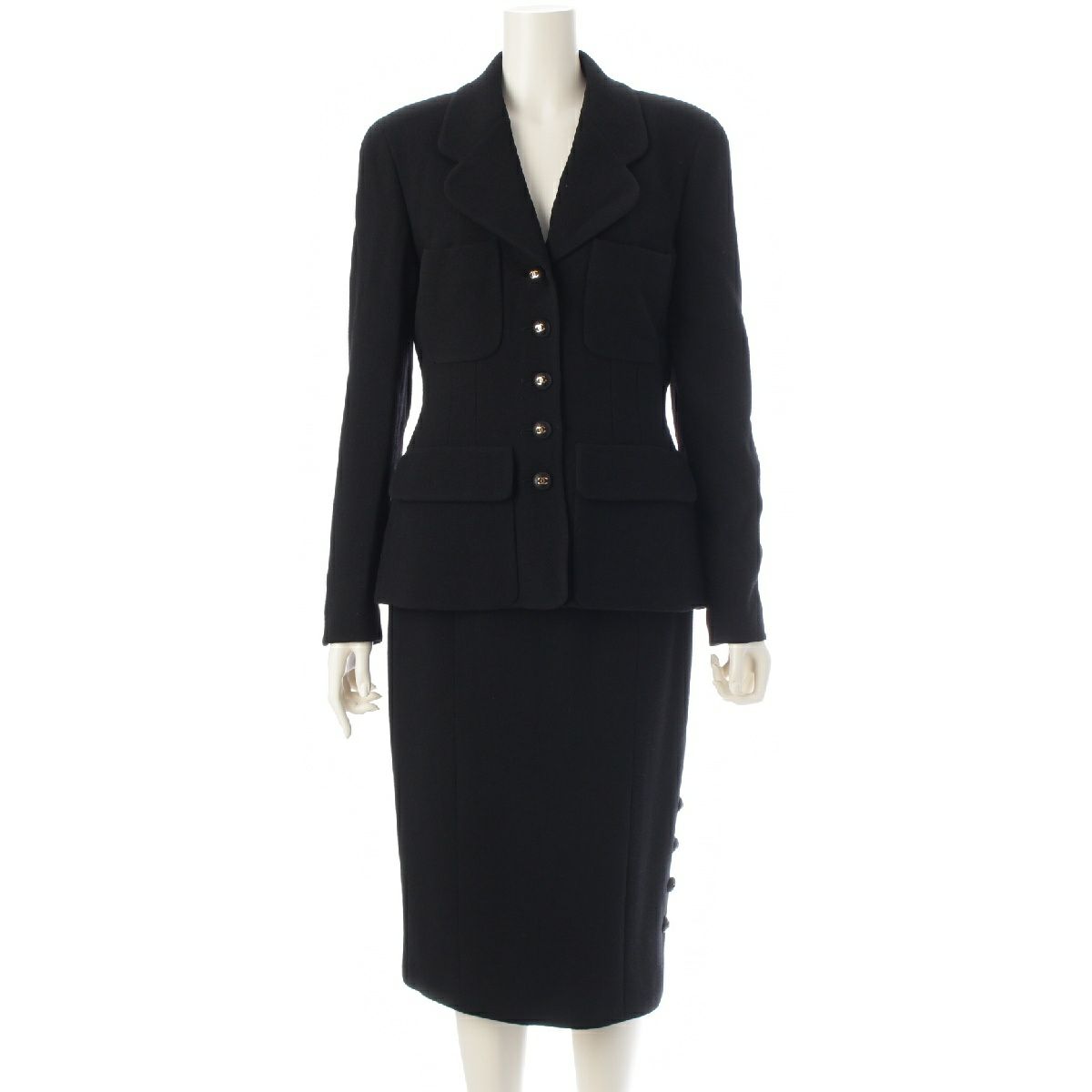 シャネル 93P ヴィンテージ ウール ツイード ココボタン タイト スカートセットアップ テーラードジャケット P01453 ブラック 40