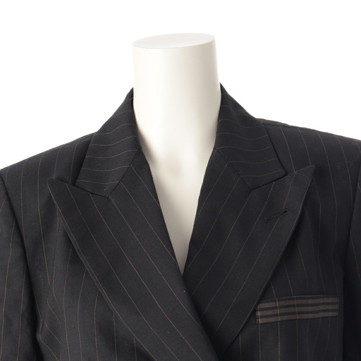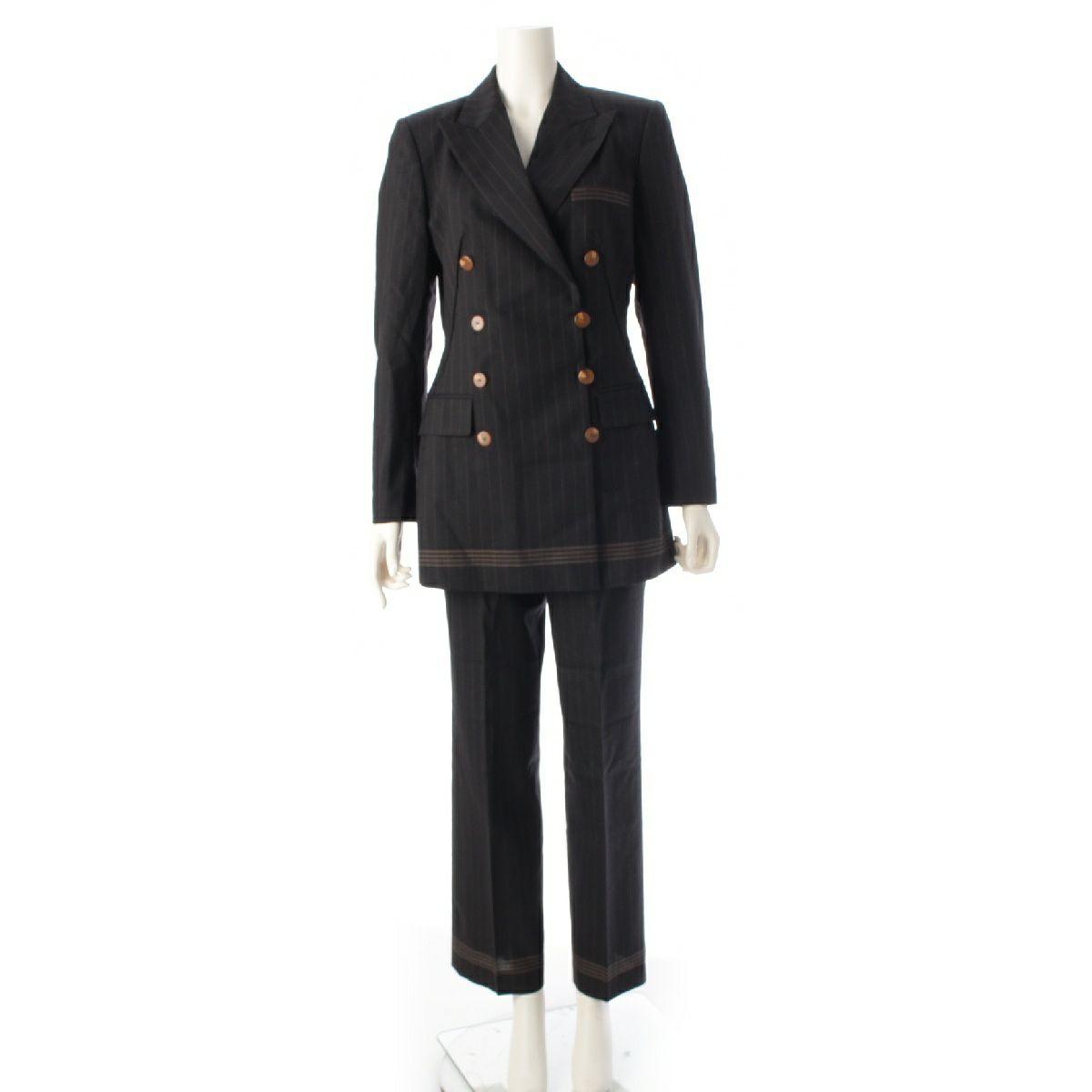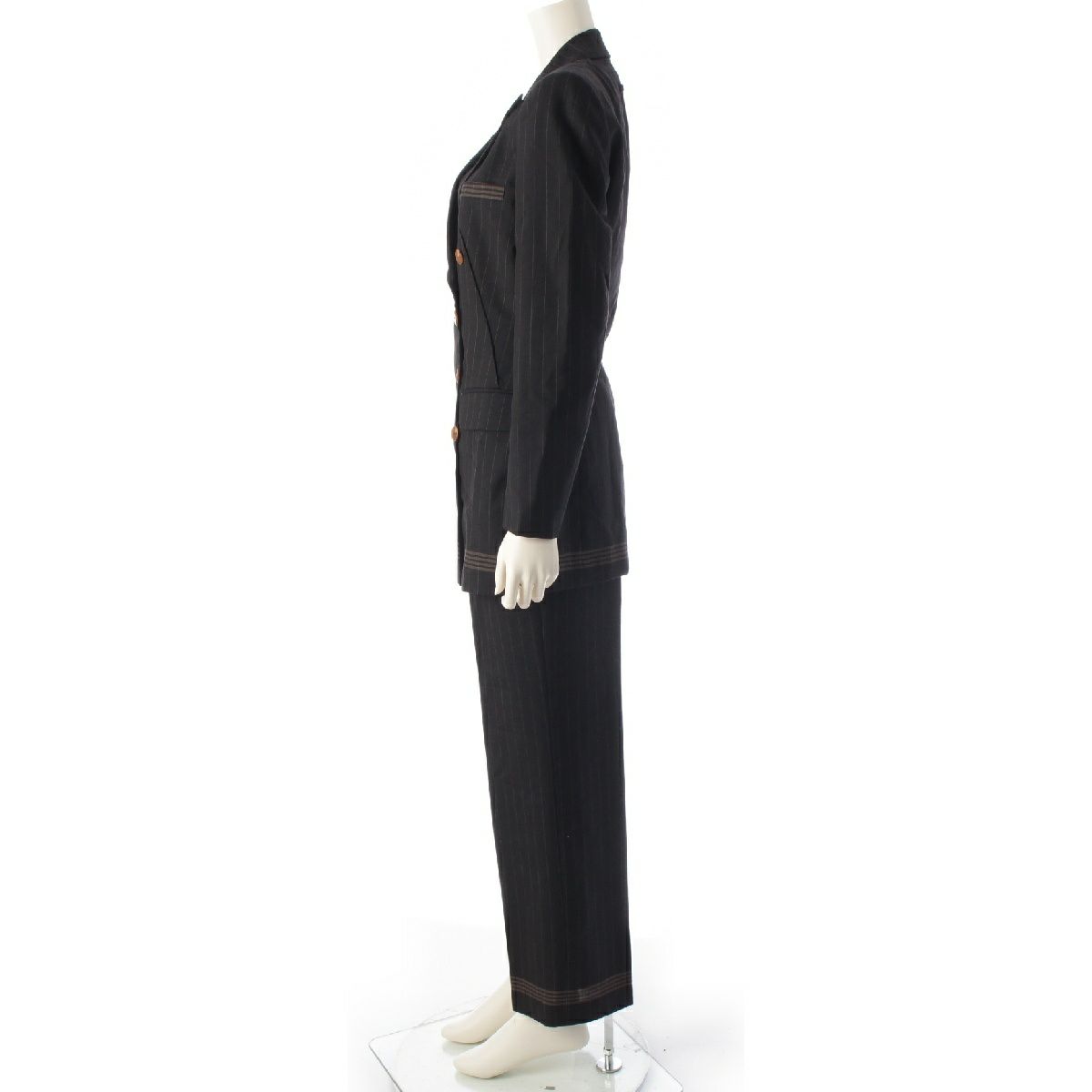 ジャンポールゴルチエ ウール クラシック ストライプ ダブルボタン ジャケット パンツセットアップ ブラック 40