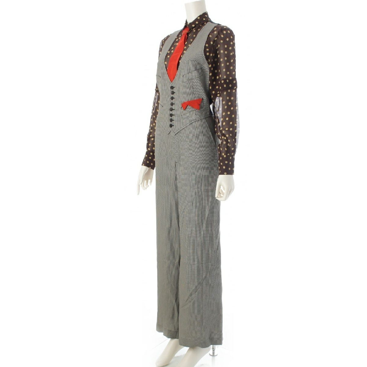 ジャンポールゴルチエ ファム 千鳥格子 ジャケット ドット ブラウス ネクタイ オールインワン パンツセットアップ ホワイト ブラック 40