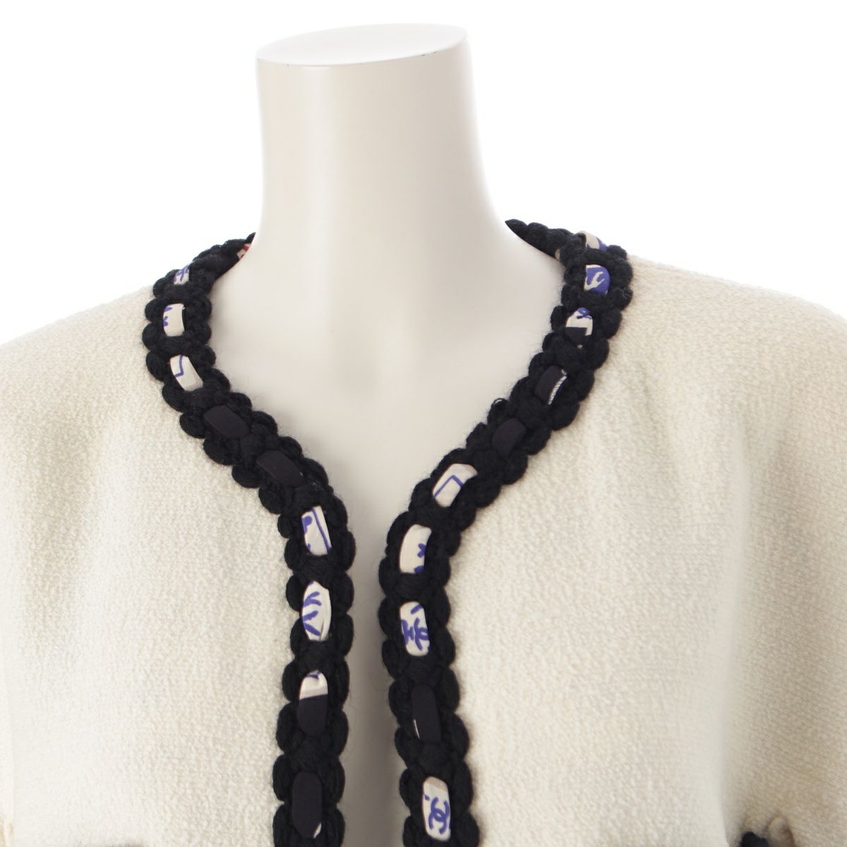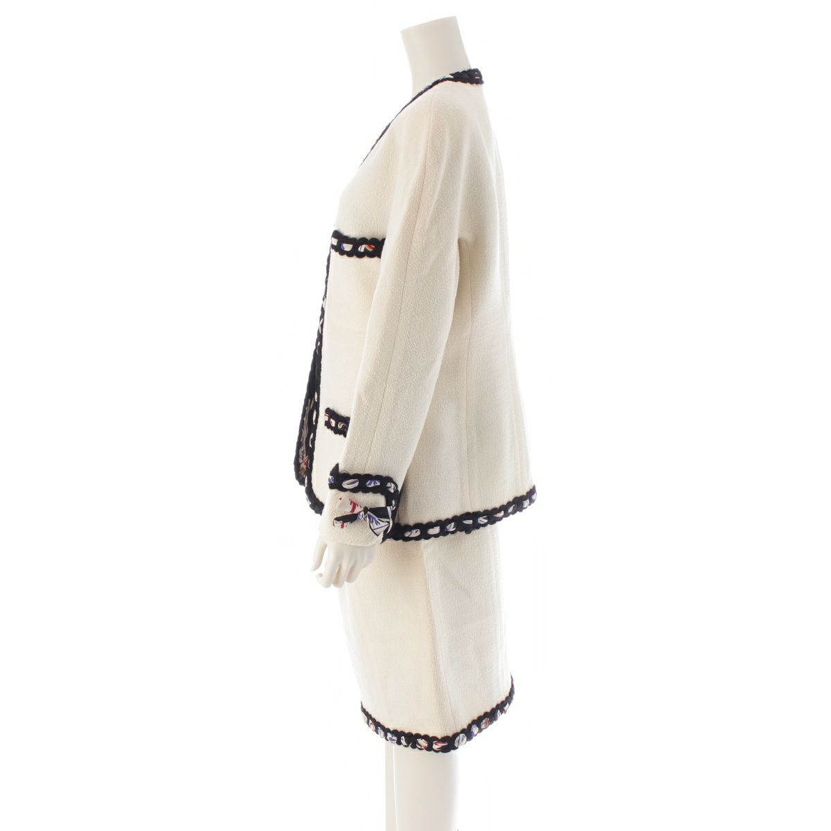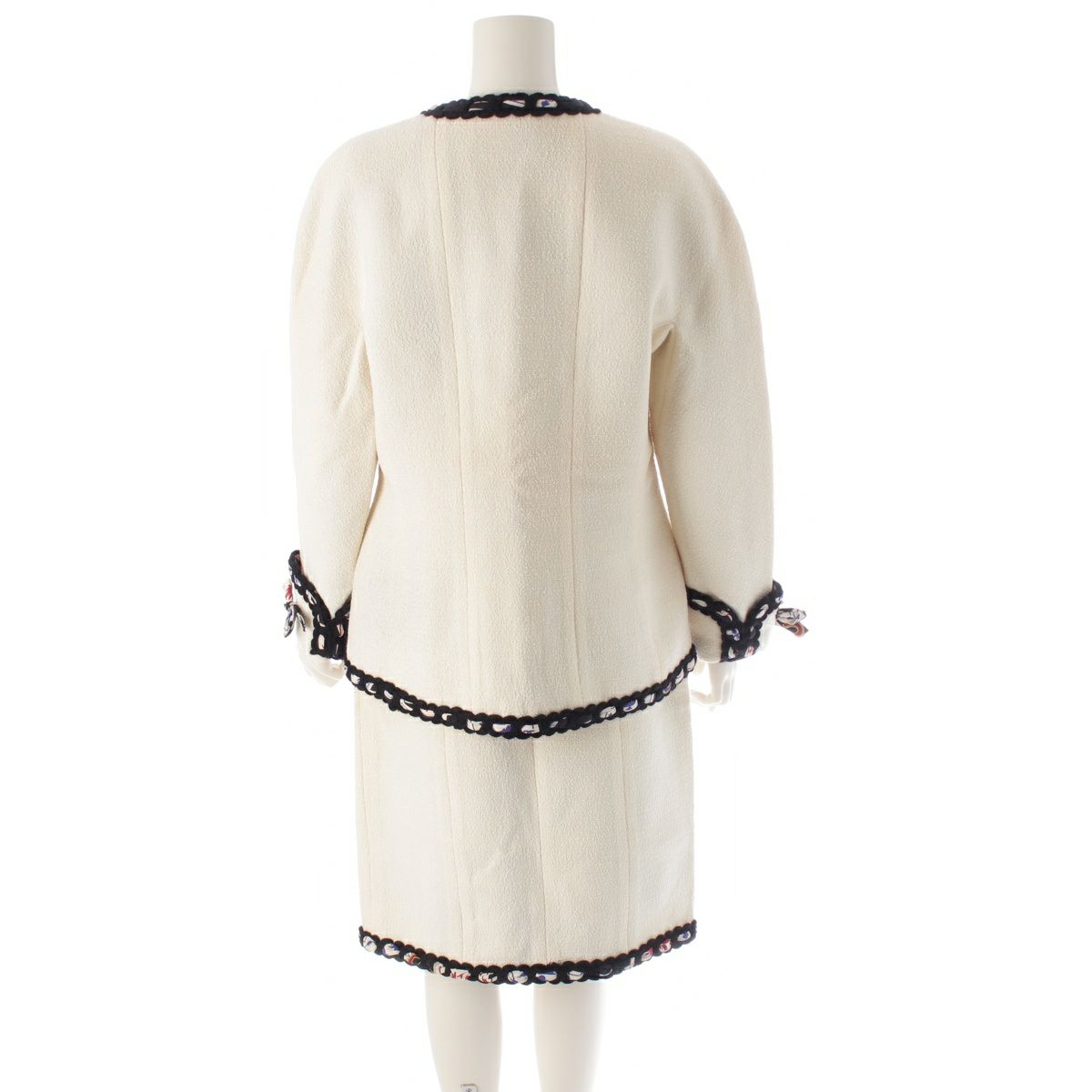 シャネル 91年春夏 ヴィンテージ ウール スカートセットアップ トランプ柄裏地 ブレードトリミング ホワイト 40