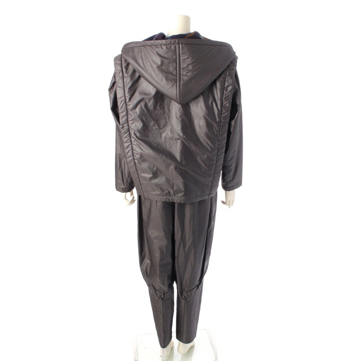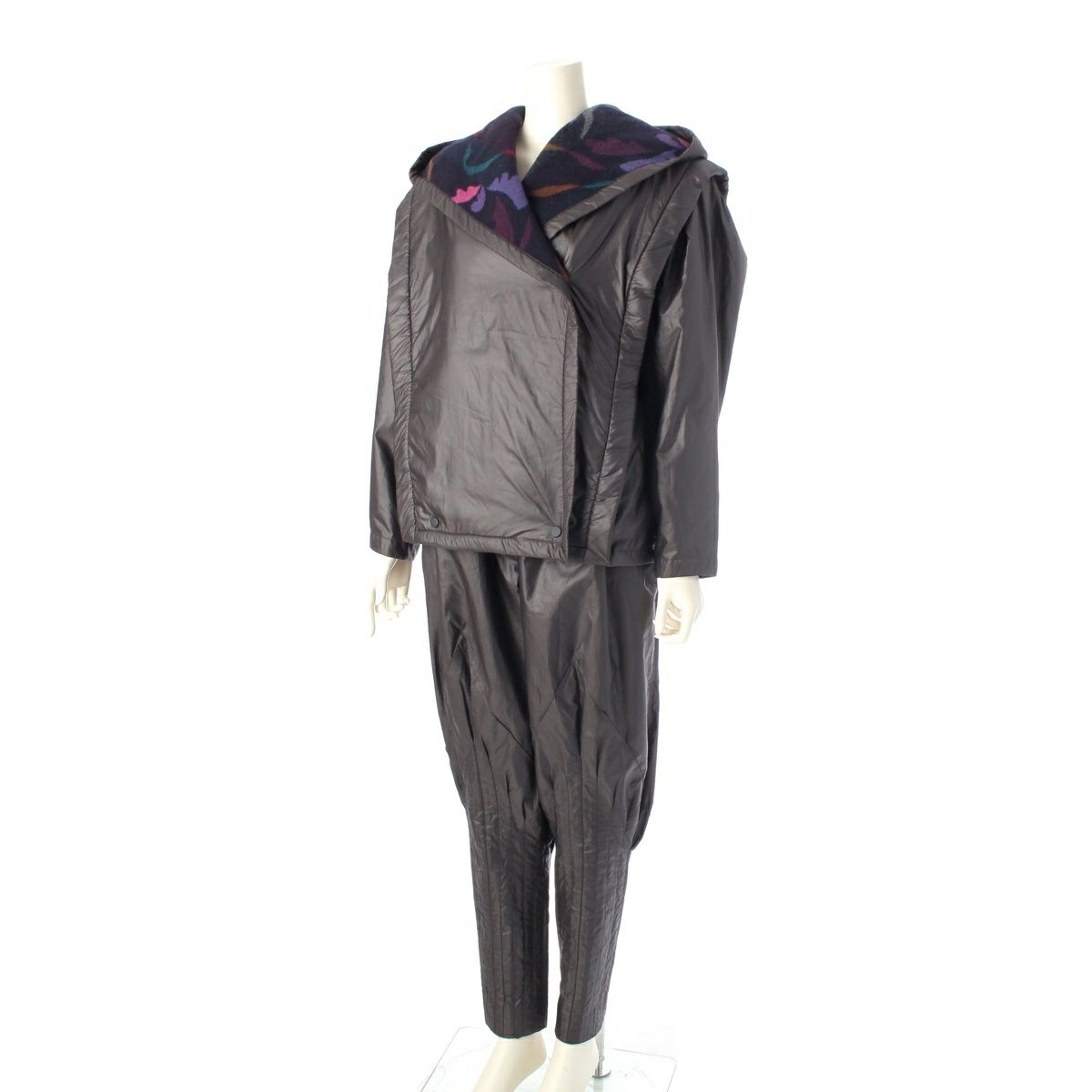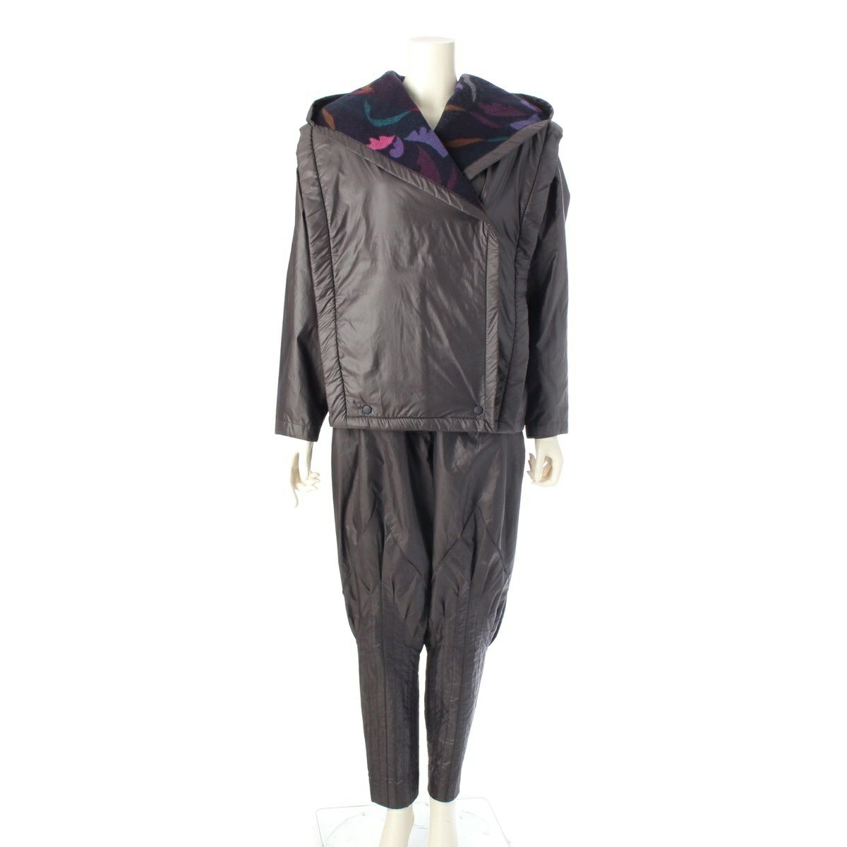 イッセイミヤケ 70’s 初期タグ 裏地ボア 総柄 フーディ ジャケット パンツセットアップ JF33111 ダークグレー 9