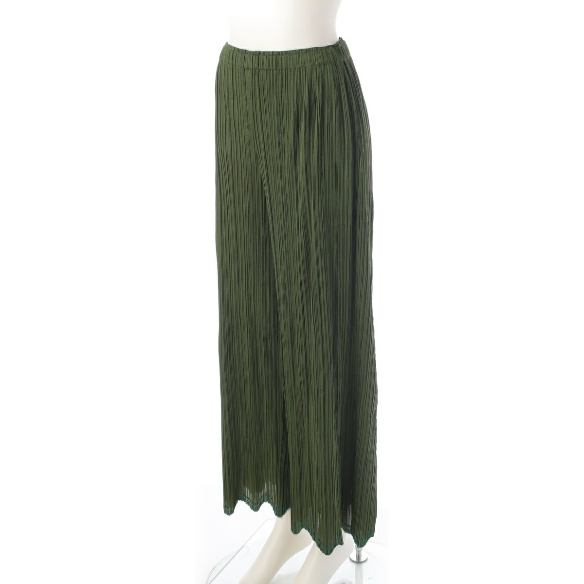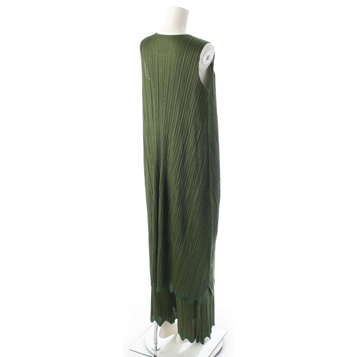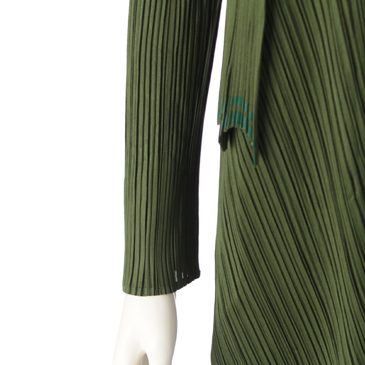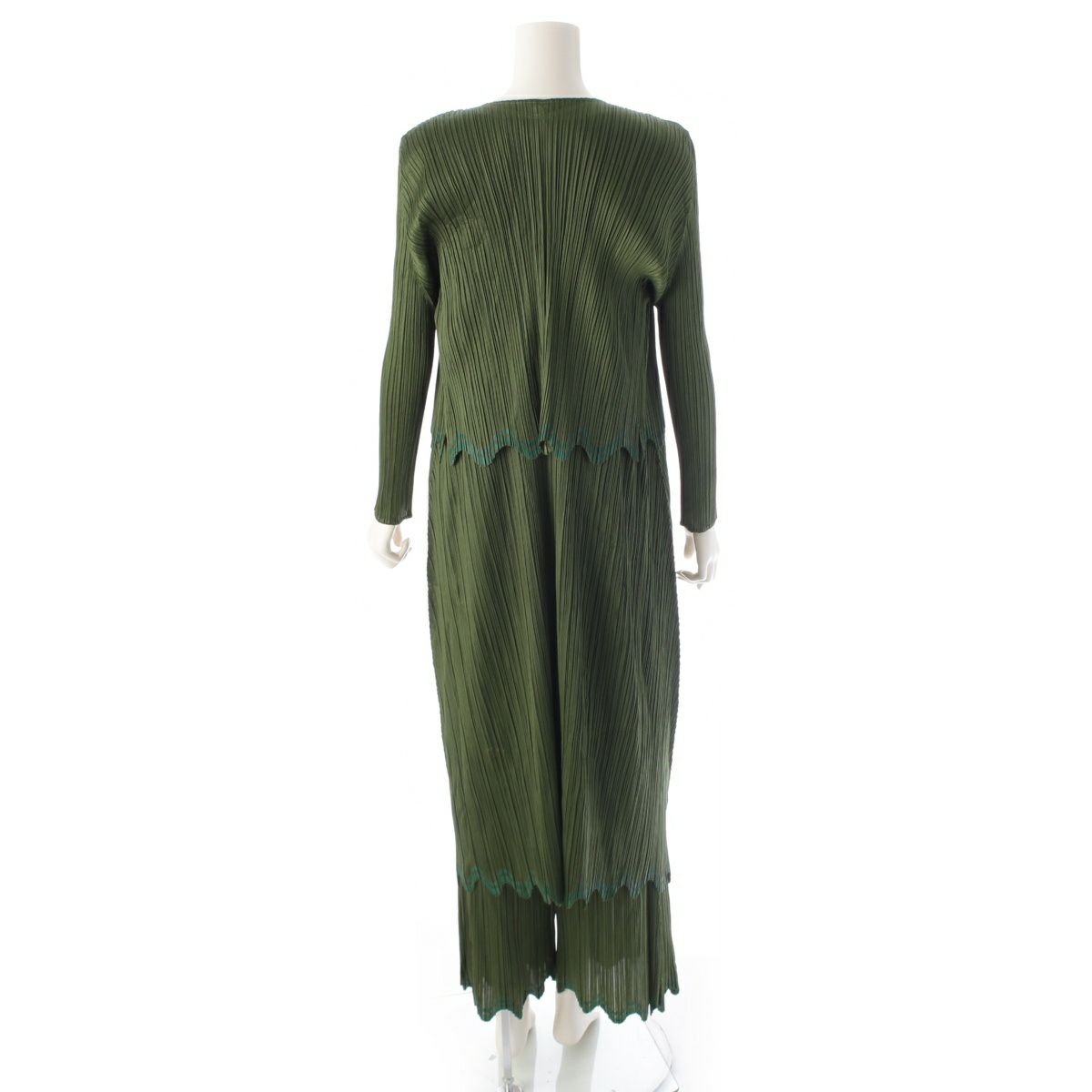 プリーツプリーズ イッセイミヤケ ラインデザイン 3ピース セットアップ ワンピース カーディガン パンツ PP93-J0642/JH646/JF644 グリーン 3/4